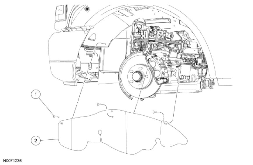 3. Remove the LH front wheel and tire assembly. For additional information, refer to Wheels and Tires Removal and Replacement.
