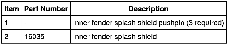 4. Remove the 3 pushpins and the left front inner fender splash shield.