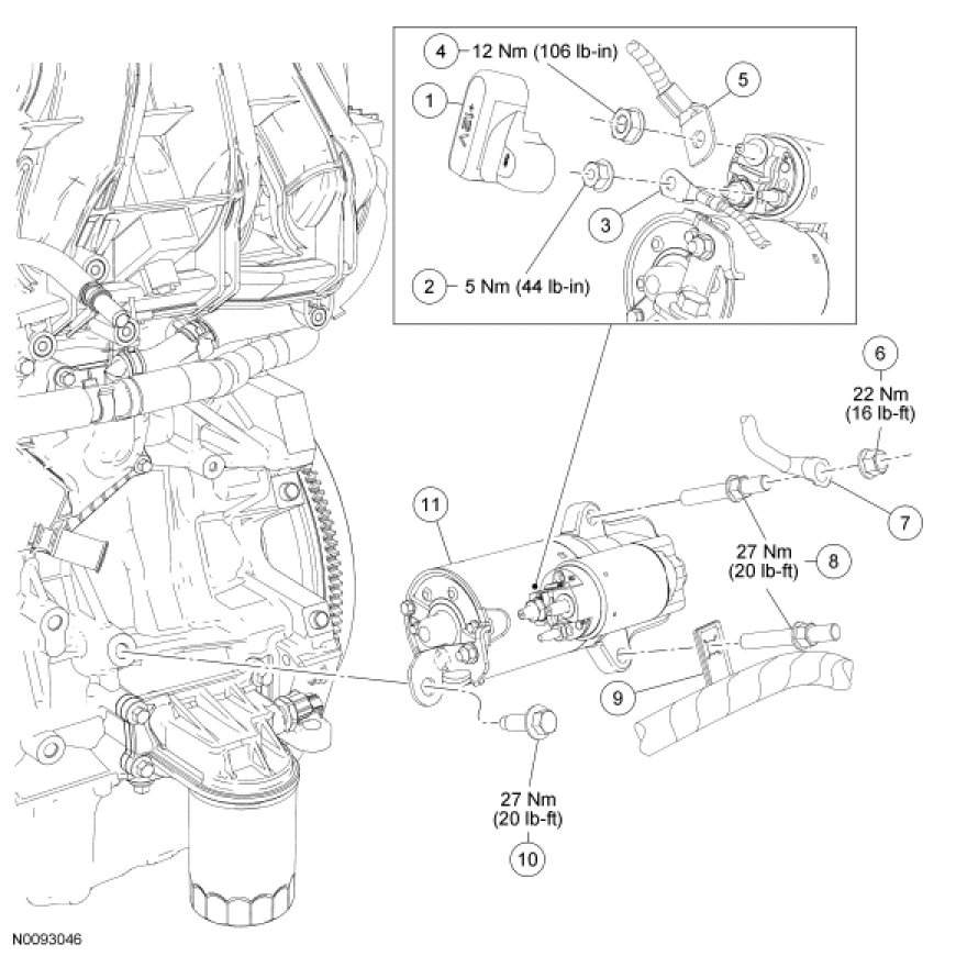 - To install, tighten the solenoid battery cable nut to 12 Nm (106 lb-in).