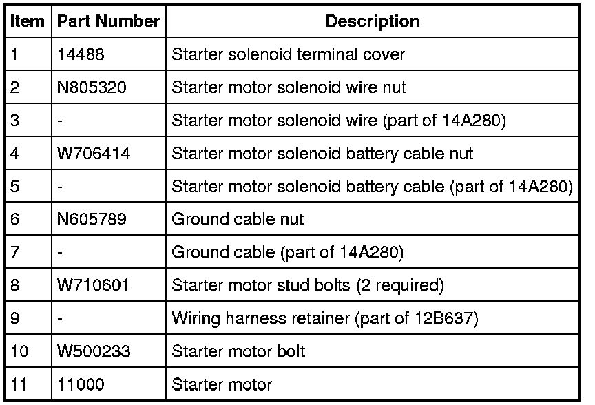 WARNING: Always disconnect the battery ground cable at the battery before disconnecting the starter motor battery terminal lead. If a tool is shorted at the starter motor battery terminal, the tool can quickly heat enough to cause a skin burn. Failure to follow this instruction may result in serious personal injury.
