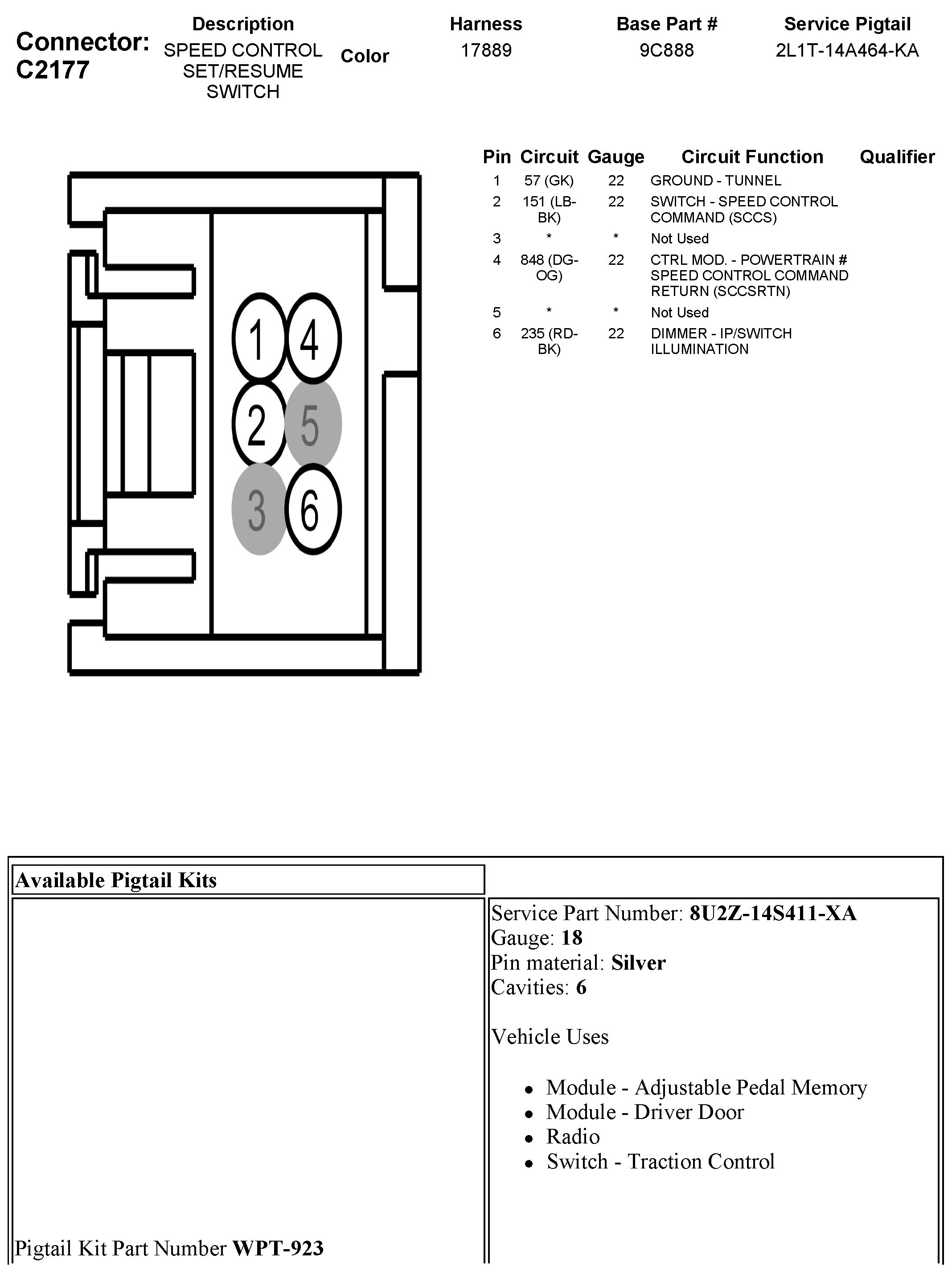 C2177 Speed Control Set/Resume Switch