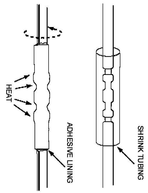 8. Use shielded heat gun to heat the repaired area until adhesive flows Out of both ends of heat shrink tubing.