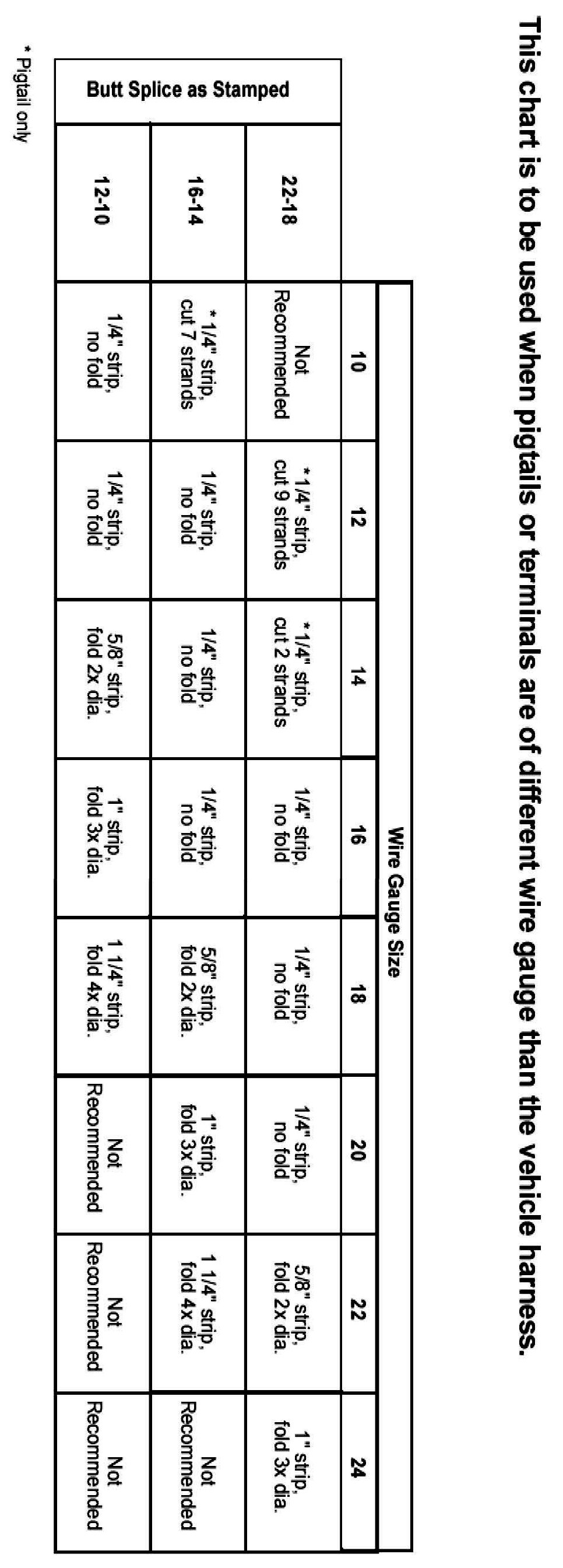 Recommended splicing method - Crimp (For 10-22 AWG Diameter Wire to Like Wire Diameter)