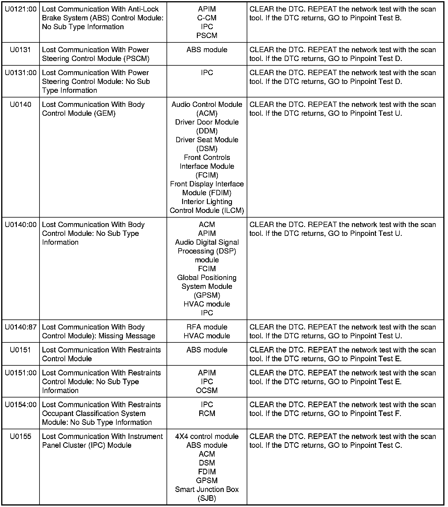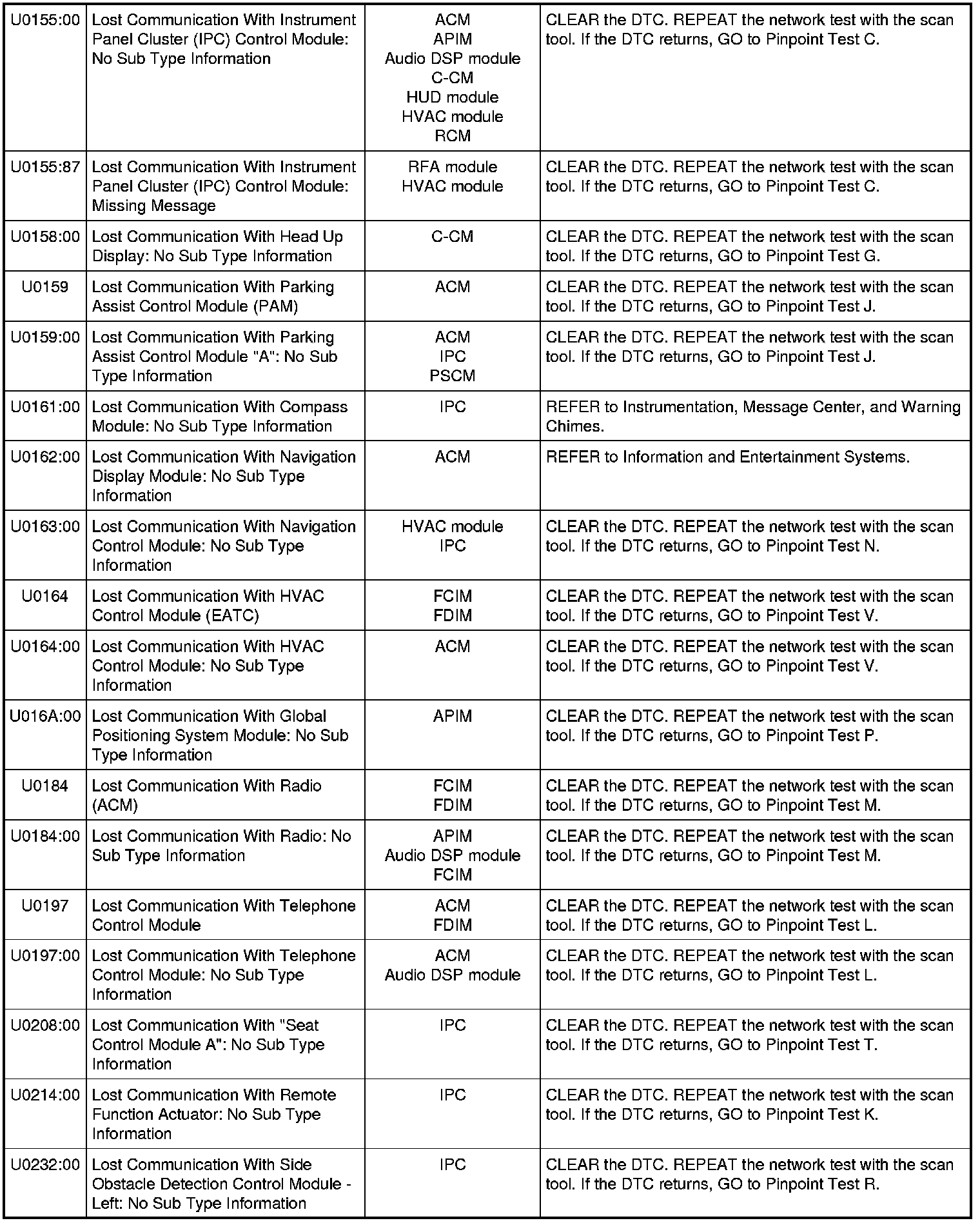 Home >> Ford >> 2011 >> Taurus AWD V6-3.5L >> Repair and Diagnosis >> Powertrain Management >> Computers and Control Systems >> Information Bus >> Testing and Inspection >> Diagnostic Trouble Code Tests and Associated Procedures >> Module Communications Network