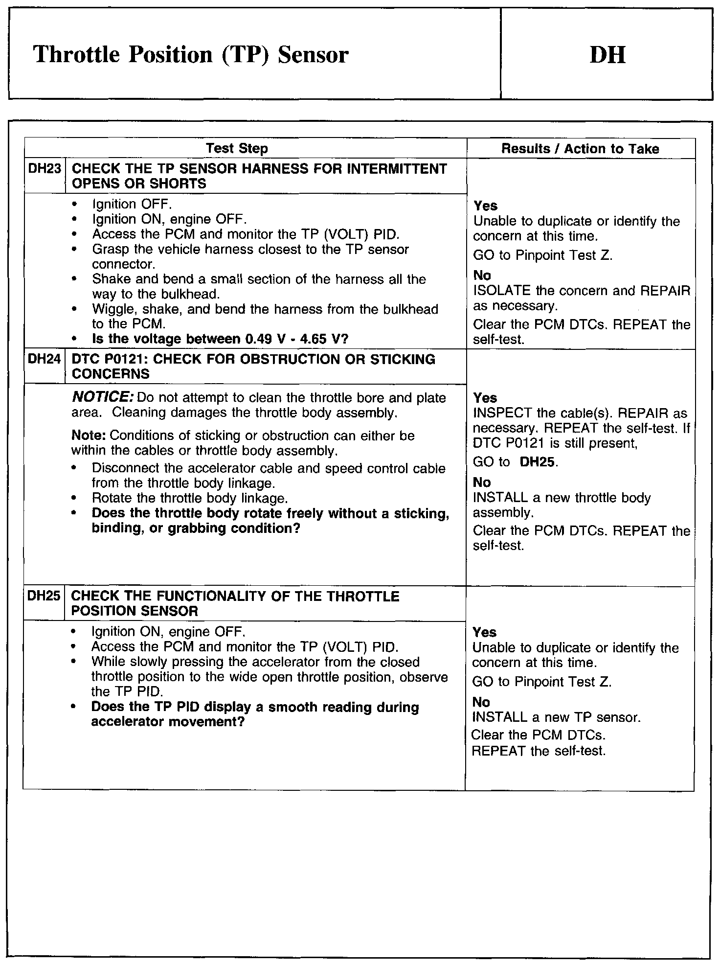 Test DH: Throttle Position (TP) Sensor