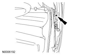 11. NOTE: The door must be open to remove the fender-to-fender bracket bolt.