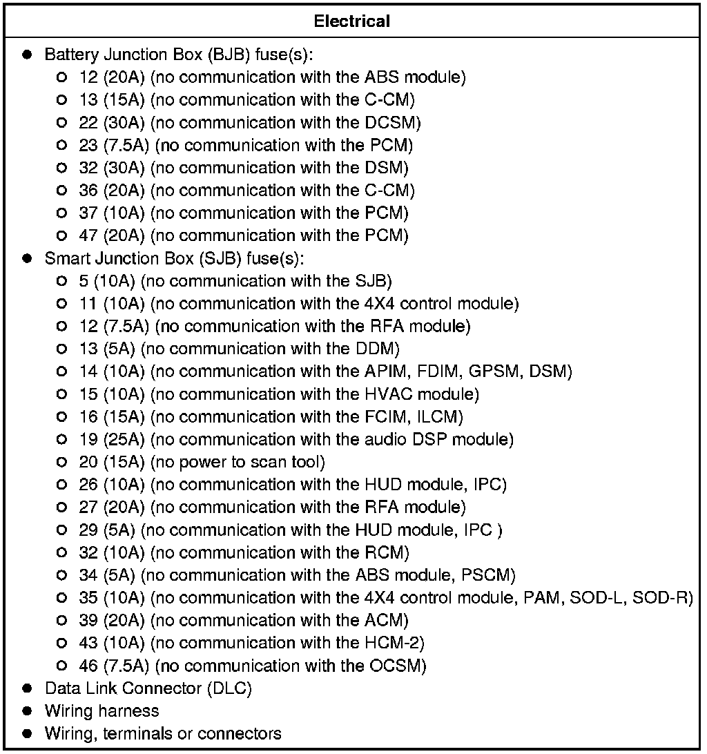 - If the network test fails, GO to Symptom Chart to identify the module not communicating. Symptom Related Diagnostic Procedures