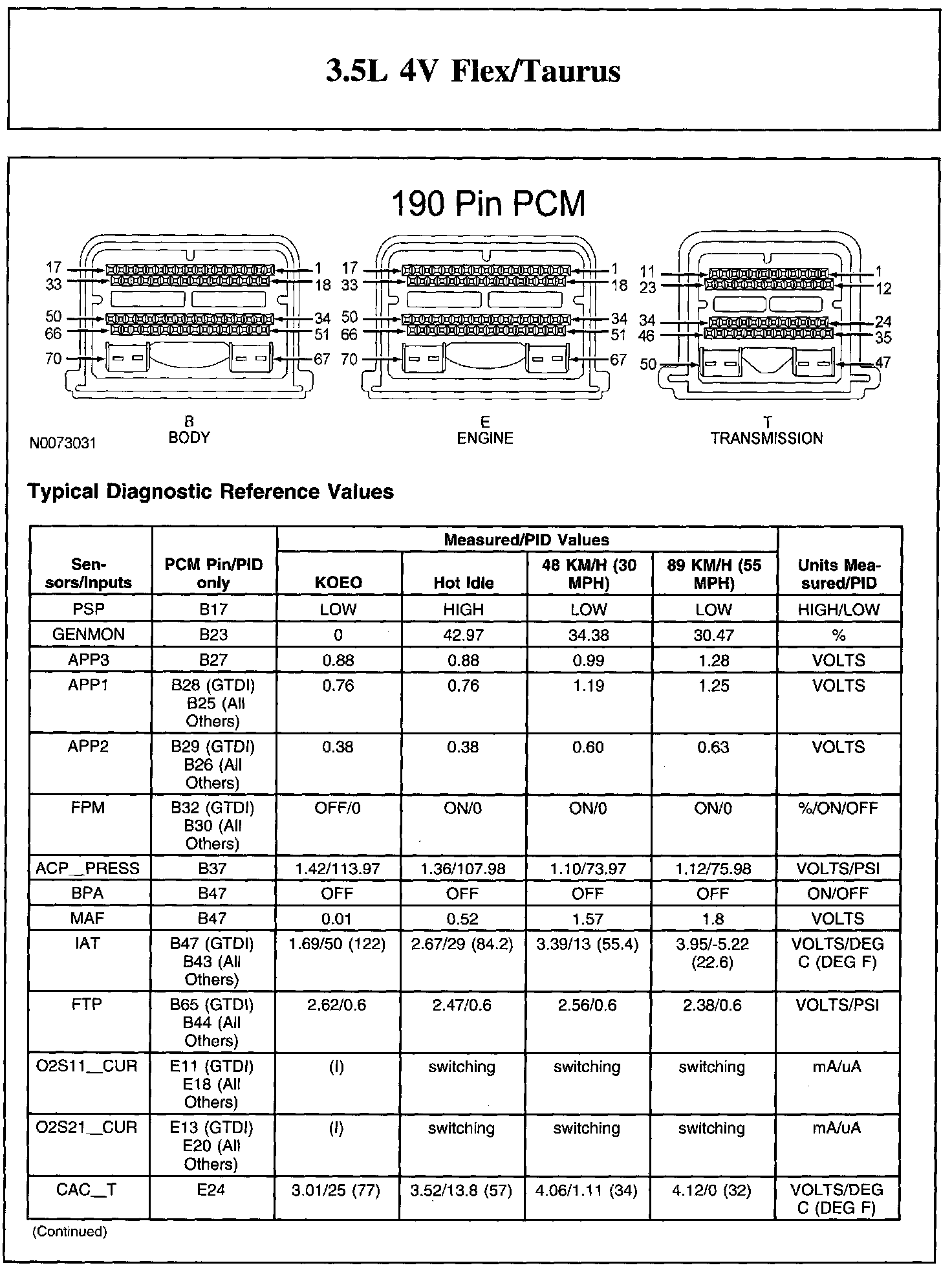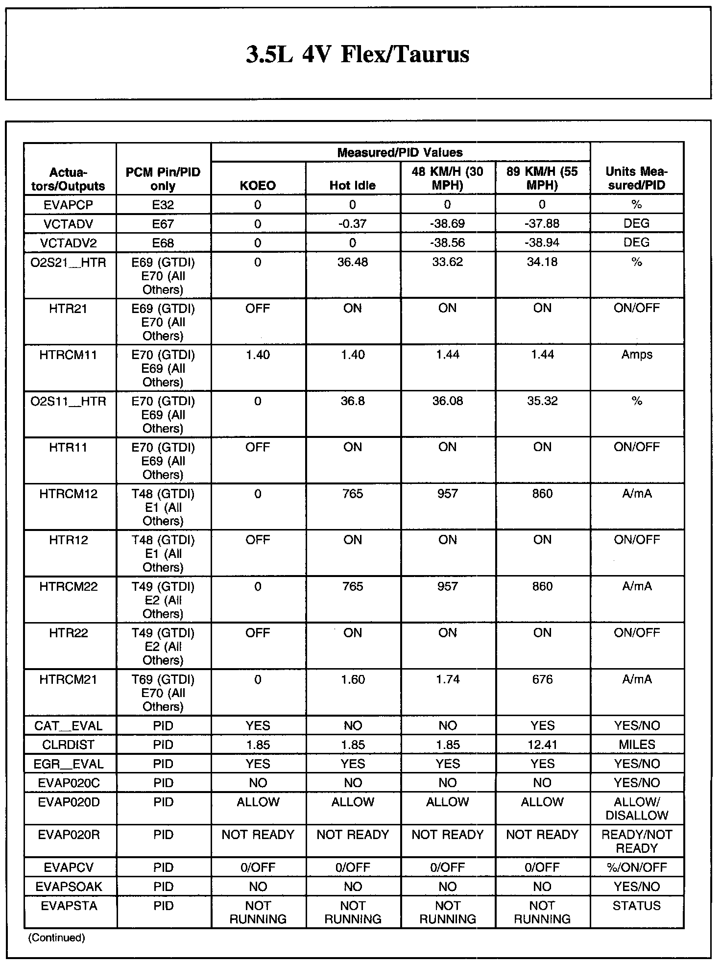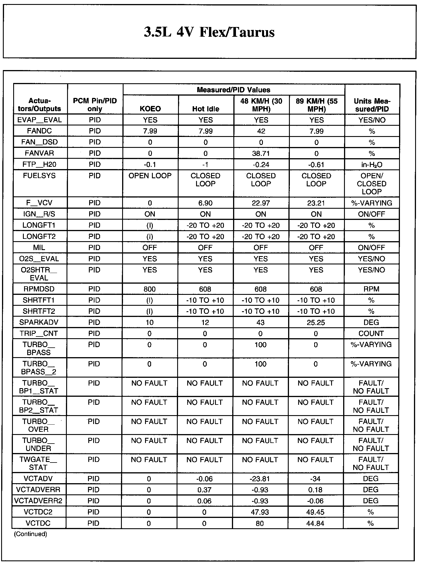 Home >> Ford >> 2011 >> Taurus FWD V6-3.5L >> Repair and Diagnosis >> Powertrain Management >> Computers and Control Systems >> Testing and Inspection >> Scan Tool Testing and Procedures >> Typical Diagnostic Reference Values