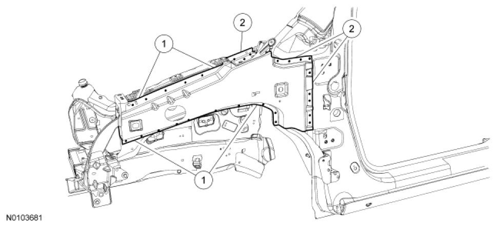 1. WARNING: Frame rail crush zones absorb crash energy during a collision and must be replaced if damaged. Straighten damaged frame rails to correct frame dimensions prior to frame member sectioning. Failure to follow these instructions may adversely affect frame rail performance and may result in serious personal injury to vehicle occupant(s).