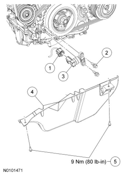 - Tighten the 2 CKP sensor bolts to 7 Nm (62 lb-in).