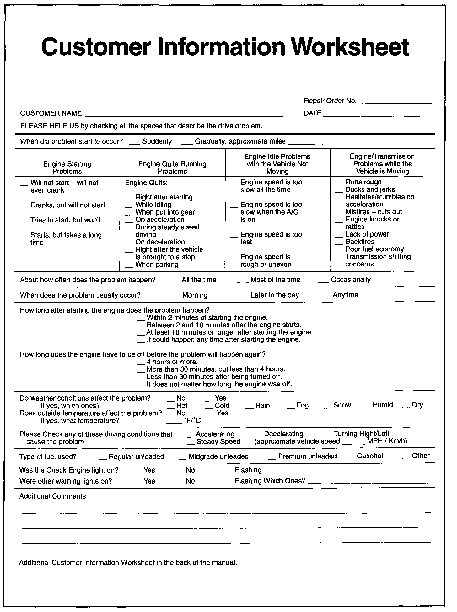 Customer Information Worksheet