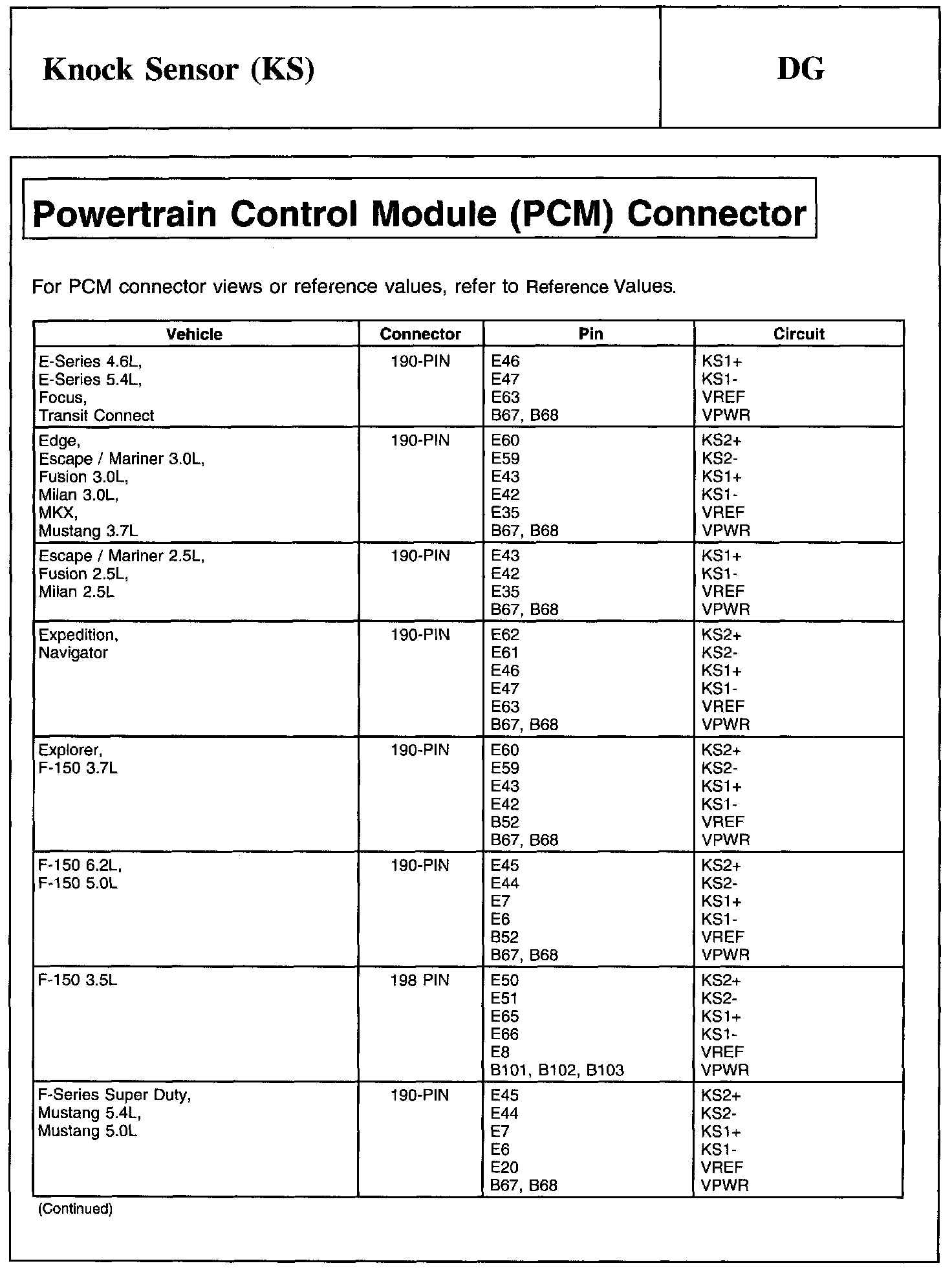 PINPOINT TEST DG: KNOCK SENSOR (KS)