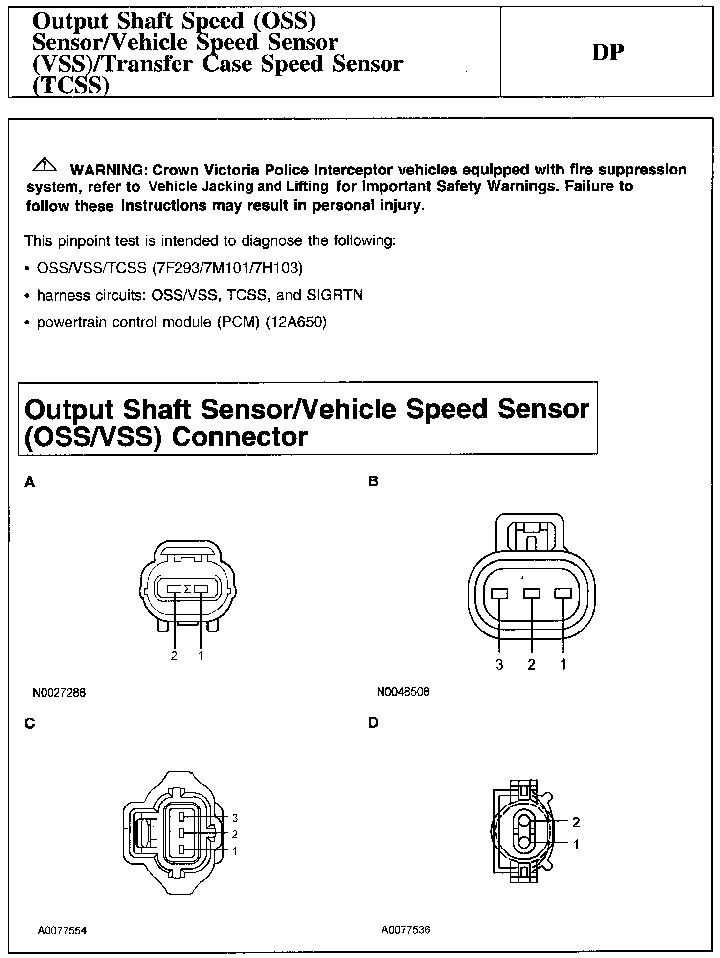 Test DP: Output Shaft Speed (OSS) Sensor/Vehicle Speed Sensor (VSS)/Transfer Case Speed Sensor (TCSS)