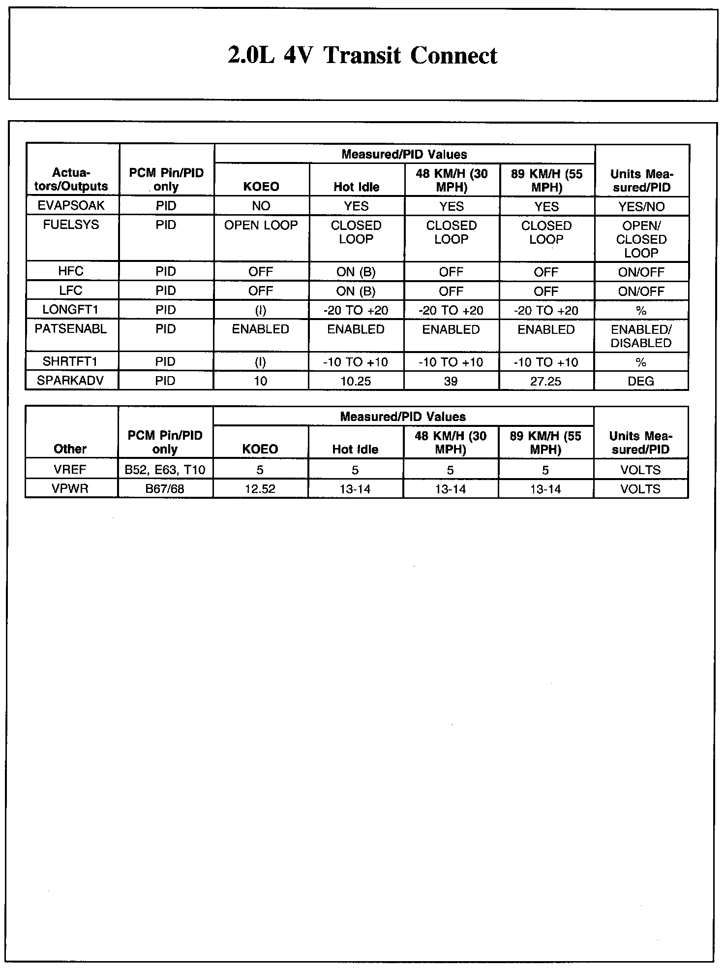 Home >> Ford >> 2011 >> Transit Connect L4-2.0L >> Repair and Diagnosis >> Powertrain Management >> Computers and Control Systems >> Testing and Inspection >> Scan Tool Testing and Procedures >> Typical Diagnostic Reference Values