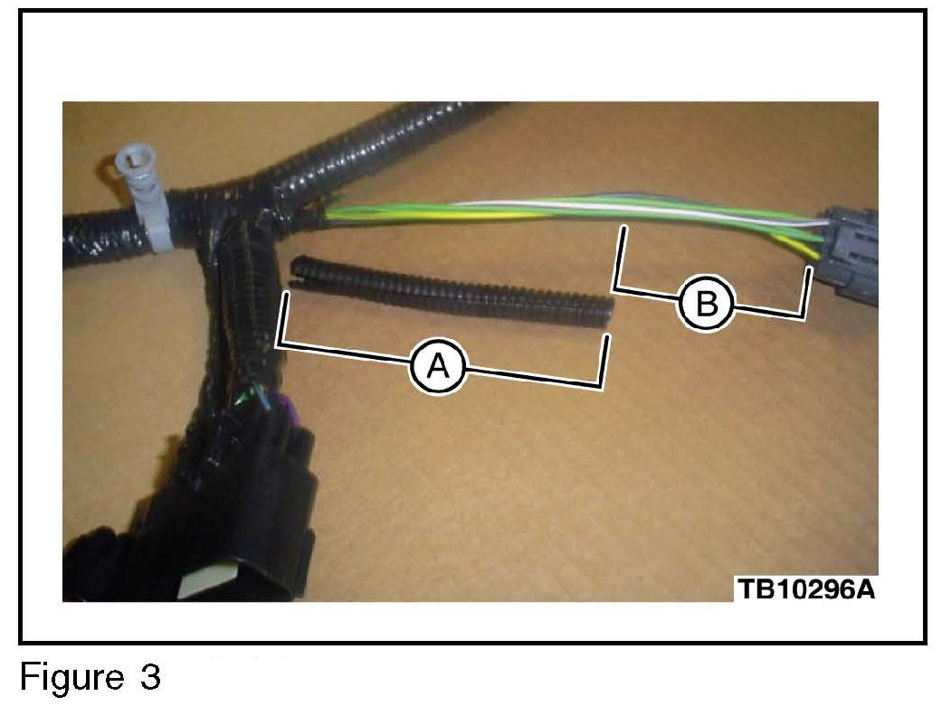 e. Remove approximately 60 mm (2-3/8") of the saved convolute and reinstall over the new EEGR valve connector harness. The convolute should butt up against the engine harness. (Figure 3A)
