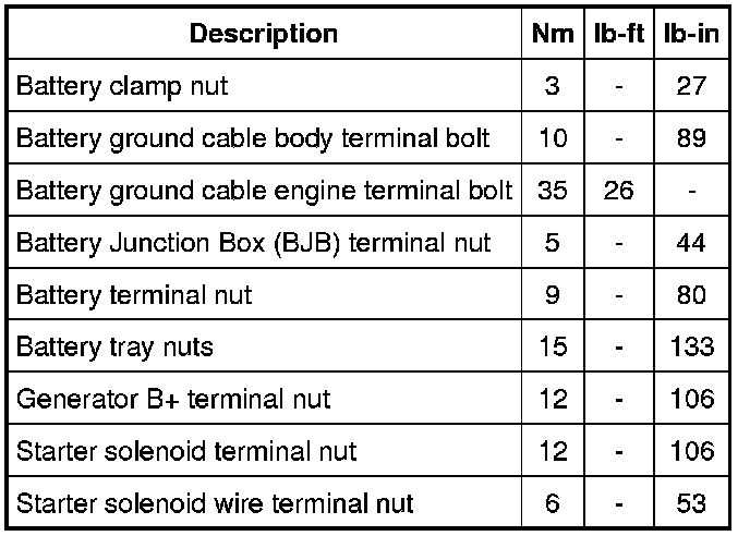 Torque Specifications