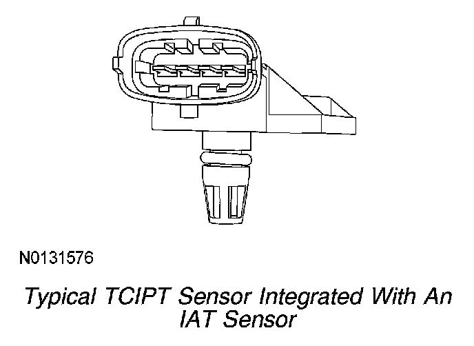 The TCIPT sensor is located in the intake air tube between the air filter assembly and the turbocharger. The TCIPT sensor measures the turbocharger intake pressure and temperature. The PCM uses the information from the TCIPT sensor to determine if the airflow to the turbocharger is being restricted by a clogged air filter or other debris. The TCIPT sensor is integrated with an IAT sensor.