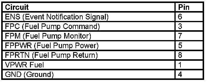 Fuel Pump Control Module Relay Connector - Refer to the Wiring Diagrams for schematic and connector information.