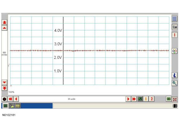 Traces below are viewed at 500mV per division (vertical axis) and 20 microseconds (20μs) per division (horizontal axis). Readings taken with a different oscilloscope vary from those shown. Compare any suspect readings to a known good vehicle.