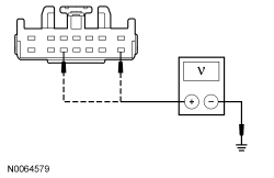 - For vehicles not equipped with a telematics module, measure the voltage between the TBC (Trailer Brake Control) module C2142-8, circuit SBB18 (YE/RD), harness side and ground; and between the TBC (Trailer Brake Control) module C2142-12, circuit CBP33 (WH/BN), harness side and ground.