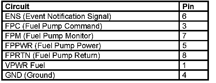 Fuel Pump Control Module Relay Connector - Refer to the Wiring Diagrams for schematic and connector information.