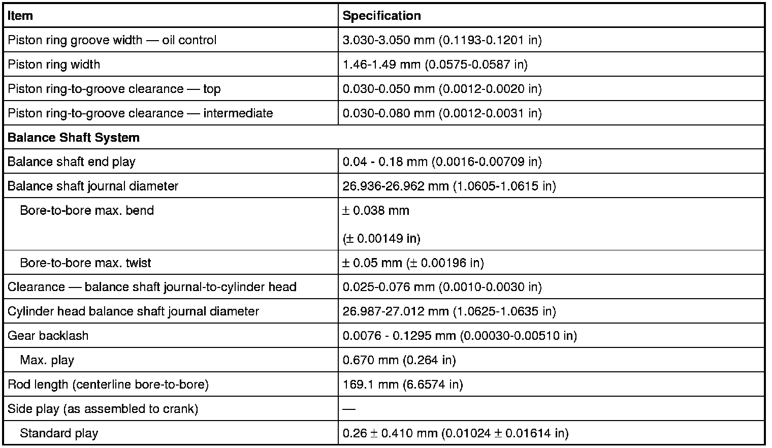 Torque Specifications