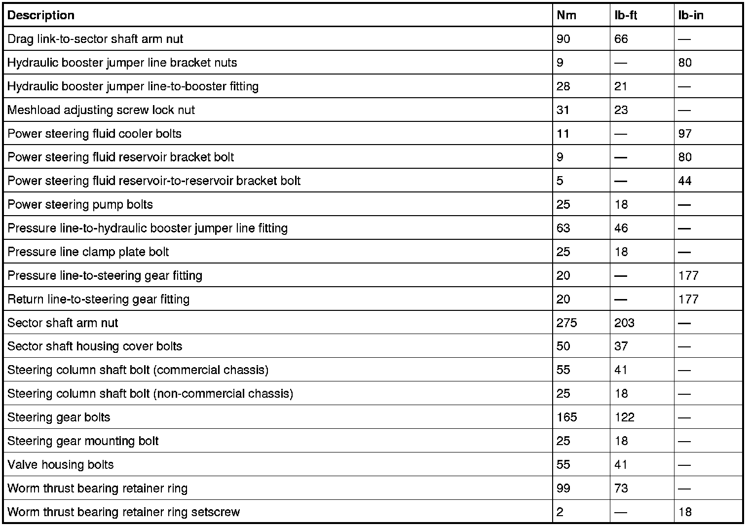 Torque Specifications