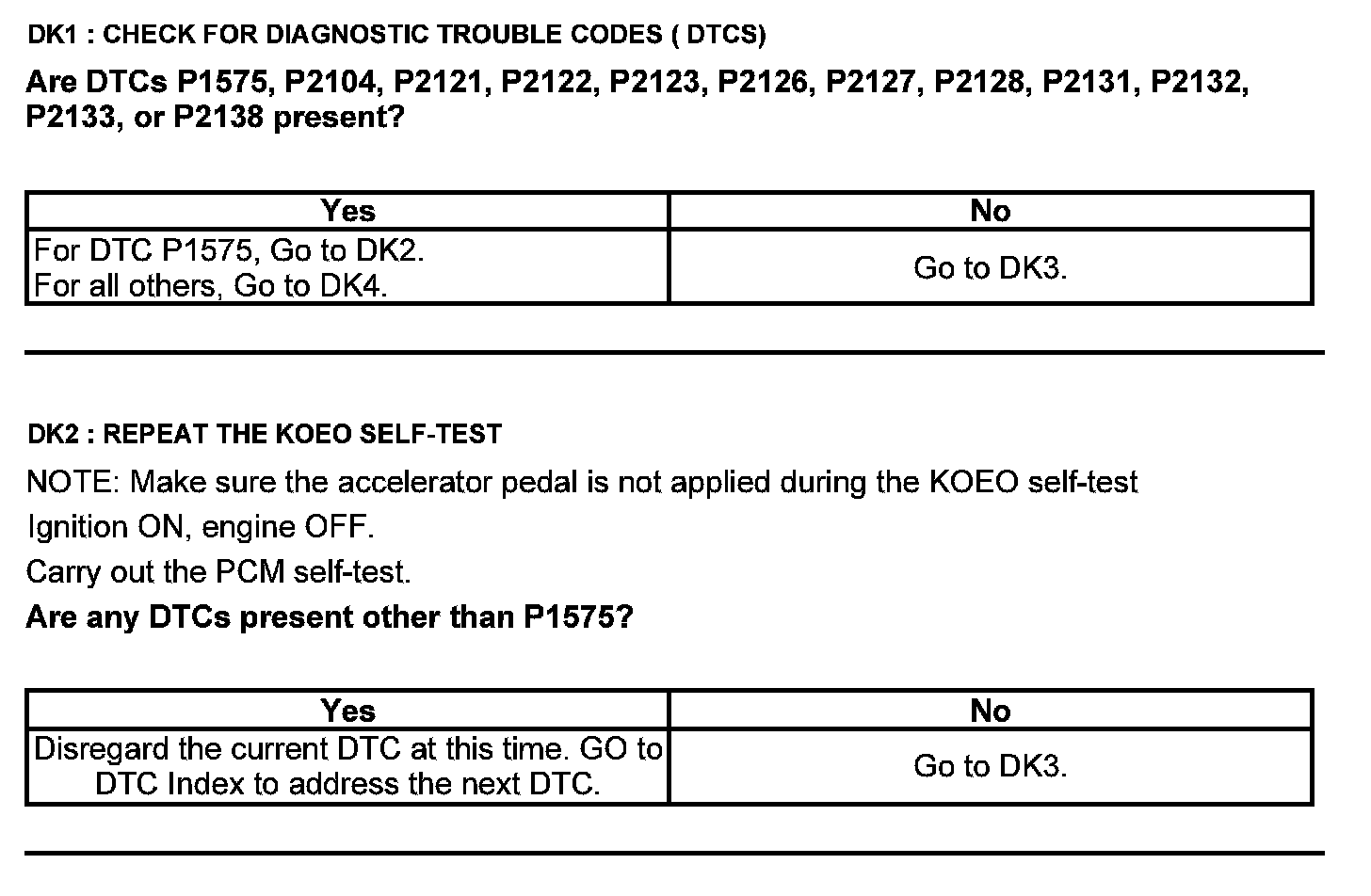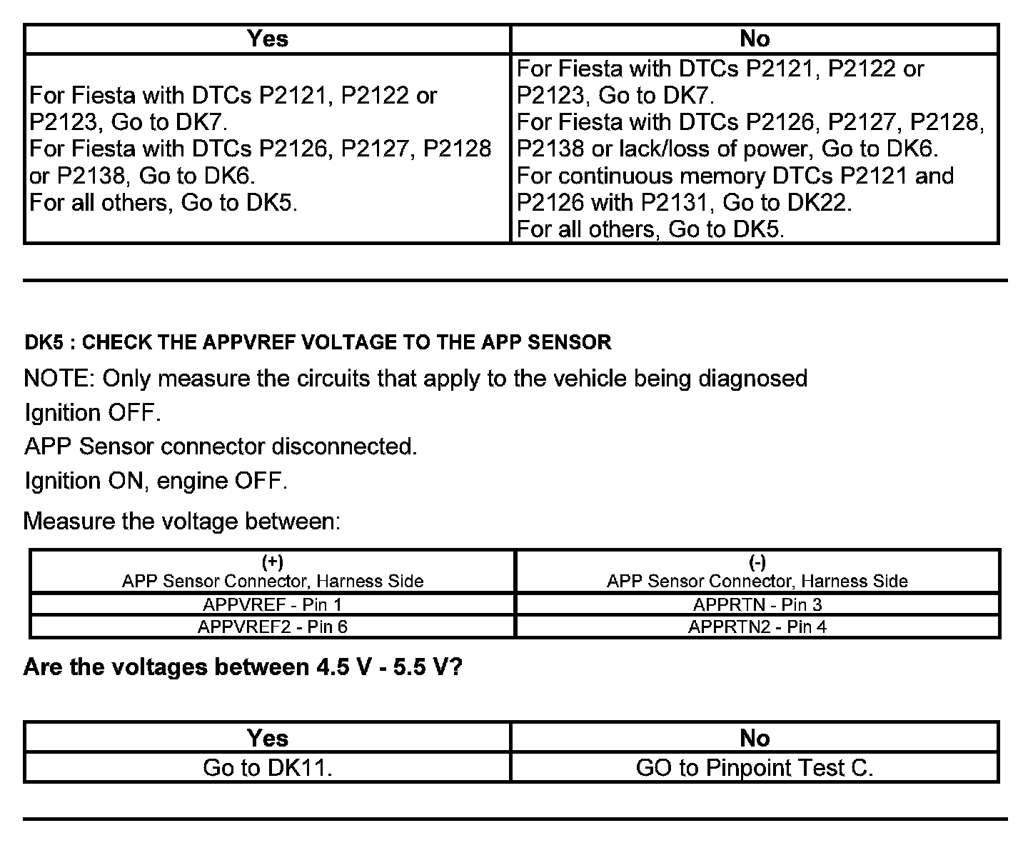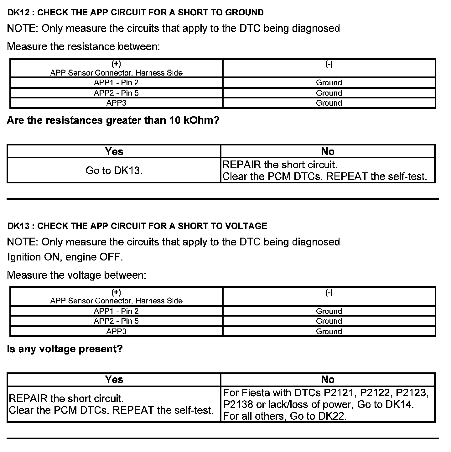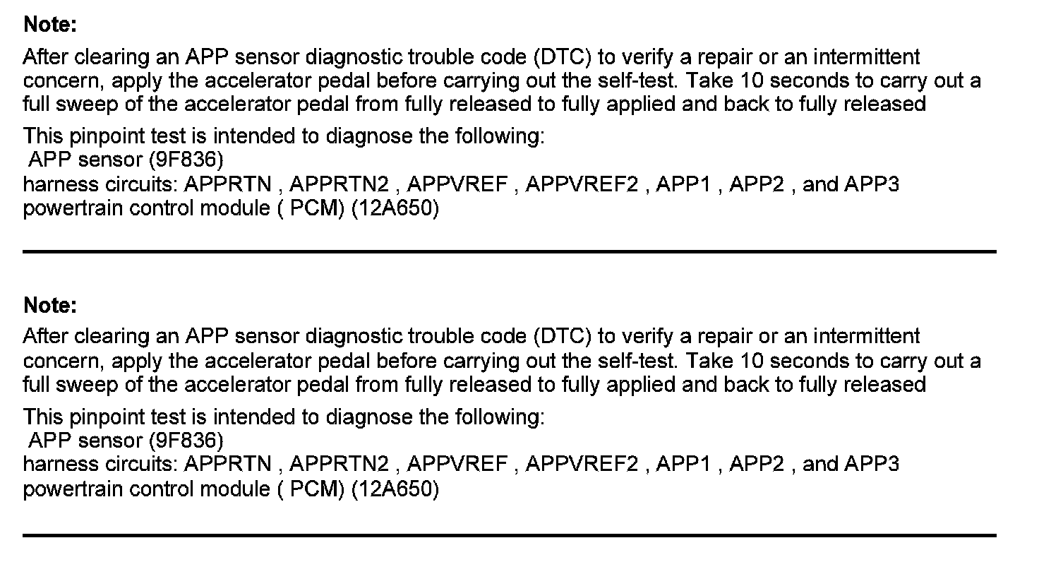Home >> Ford >> 2012 >> Edge AWD V6-3.5L >> Repair and Diagnosis >> Powertrain Management >> Computers and Control Systems >> Testing and Inspection >> Pinpoint Tests >> Test DK: Accelerator Pedal Position (APP) Sensor