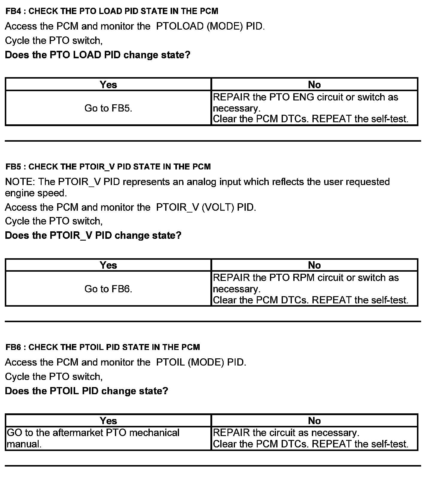 Test FB: Power Take Off (PTO)