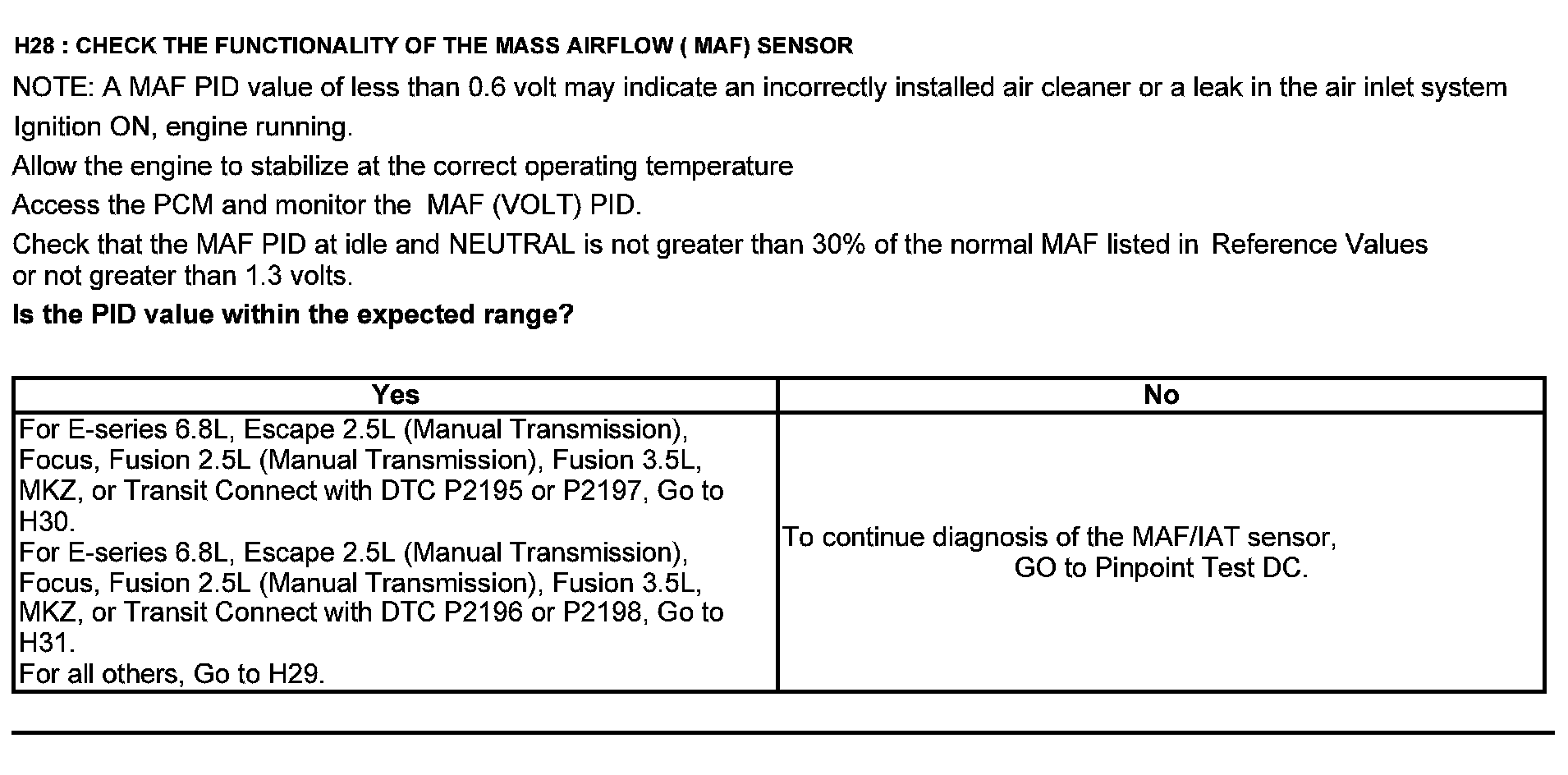 Home >> Ford >> 2012 >> Edge AWD V6-3.5L >> Repair and Diagnosis >> Powertrain Management >> Computers and Control Systems >> Testing and Inspection >> Pinpoint Tests >> Test H: Fuel Control