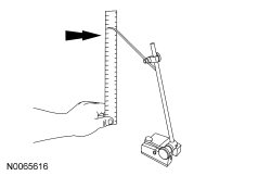 1. Measure the distance between the same flat level surface and the center of the lower arm-to-subframe bolt (measurement 2).