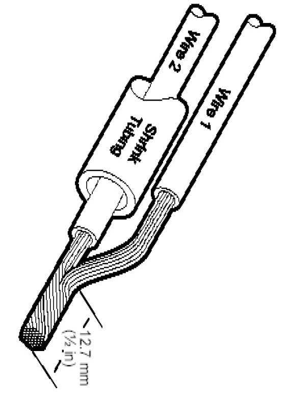 NOTE: Overlap tubing on both wires.