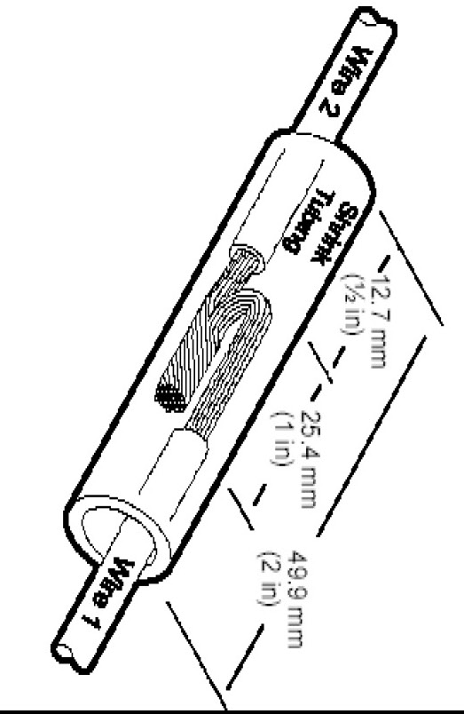 12. Evenly position supplied heat shrink tubing over wire repair.