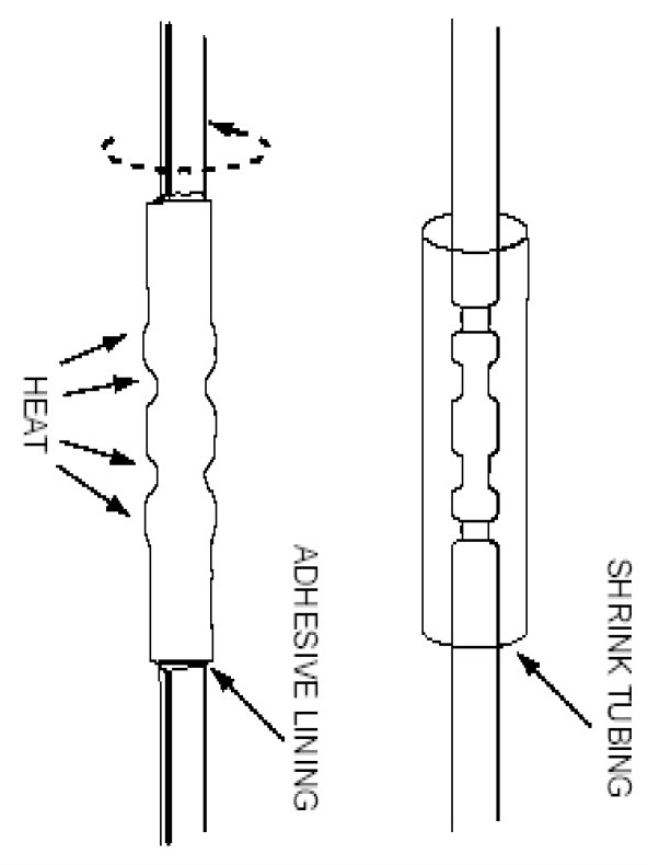 8. Use shielded heat gun to heat the repaired area until adhesive flows Out of both ends of heat shrink tubing.