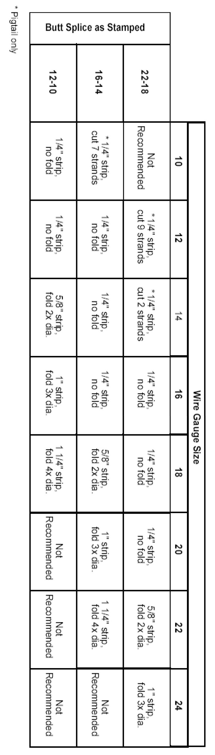 Recommended splicing method - Crimp (For 10-22 AWG Diameter Wire to Like Wire Diameter)