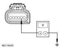 - Measure the voltage between the SOD-R (Side Obstacle Detection Control Module - Right) C4370-2, circuit CBP34 (VT/BN), harness side and ground.