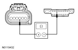 - Measure the resistance between the SOD-R (Side Obstacle Detection Control Module - Right) C4370-5, circuit GD151 (BK/GN), harness side and ground; and between the SOD-R (Side Obstacle Detection Control Module - Right) C4370-6, circuit GD151 (BK/GN), harness side and ground.
