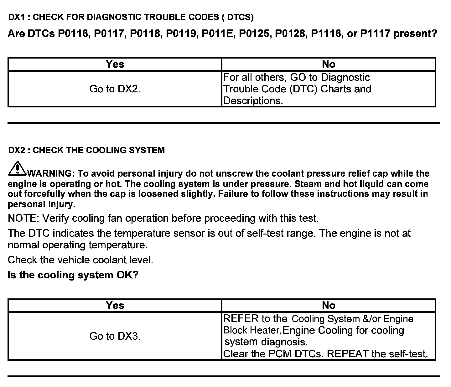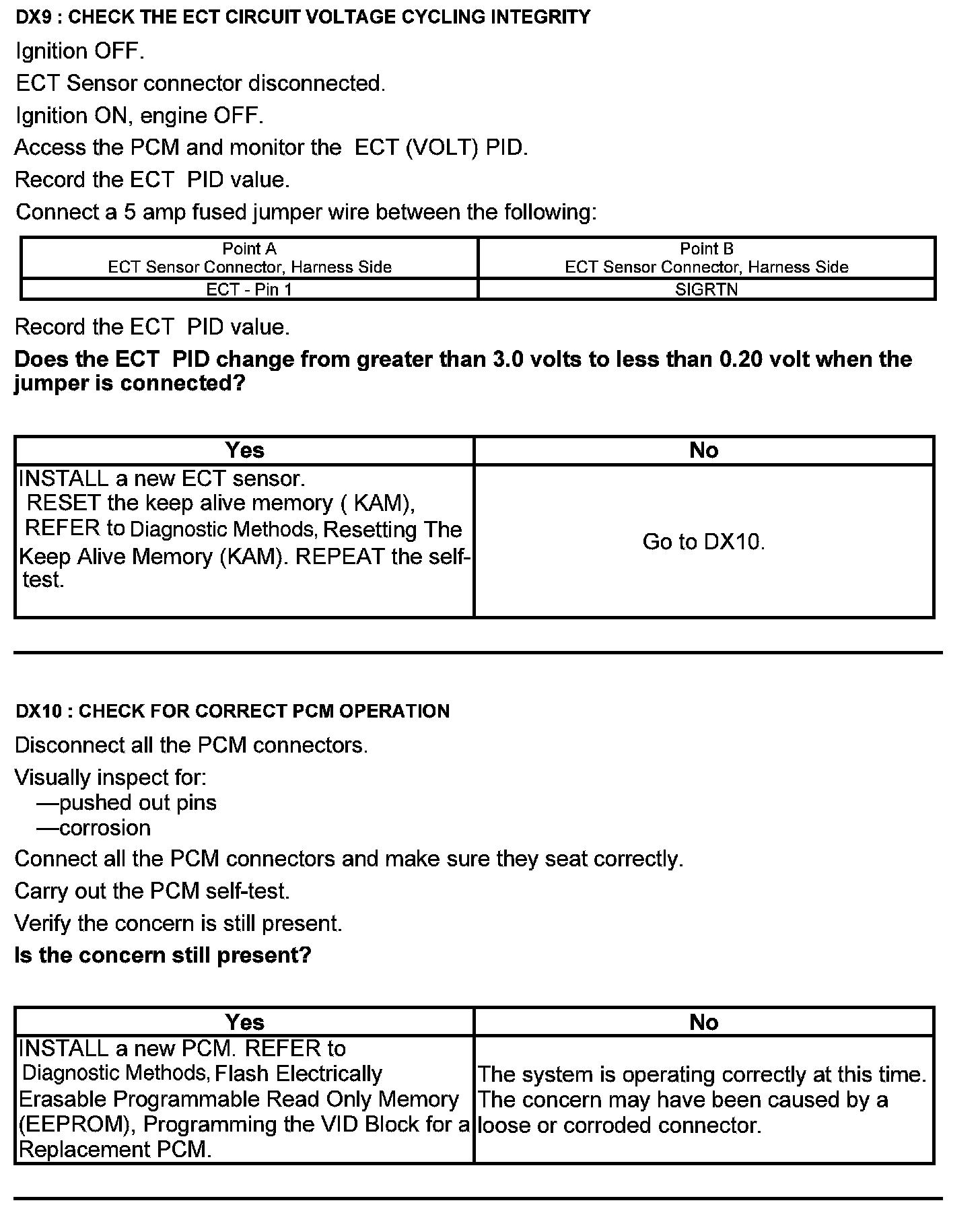 Home >> Ford >> 2012 >> Edge AWD V6-3.7L >> Repair and Diagnosis >> Powertrain Management >> Computers and Control Systems >> Testing and Inspection >> Pinpoint Tests >> Test DX: Engine Coolant Temperature (ECT) Sensor