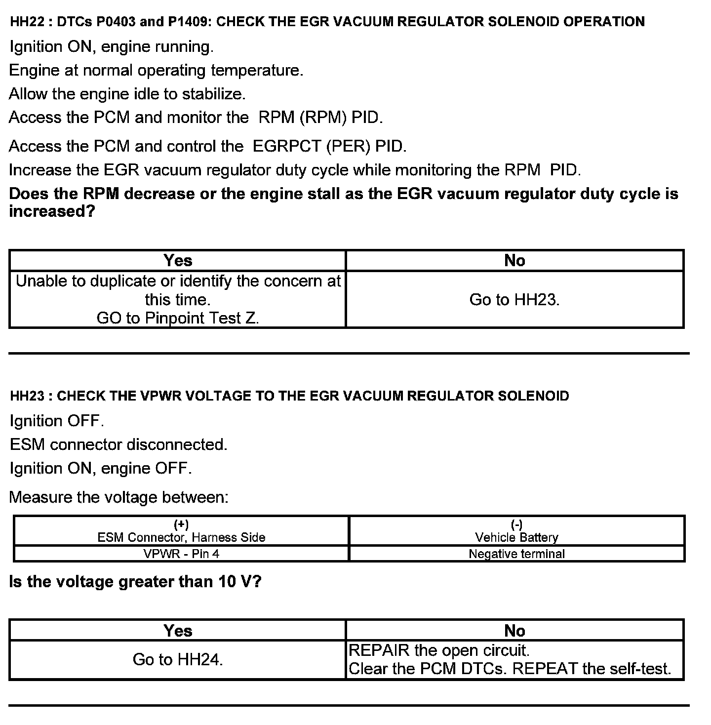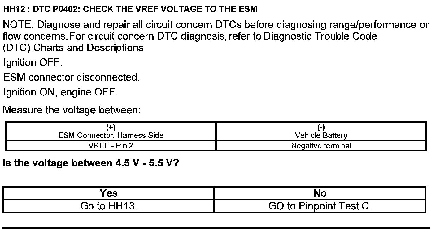 Home >> Ford >> 2012 >> Edge AWD V6-3.7L >> Repair and Diagnosis >> Powertrain Management >> Computers and Control Systems >> Testing and Inspection >> Pinpoint Tests >> Test HH: Exhaust Gas Recirculation System Module (ESM)