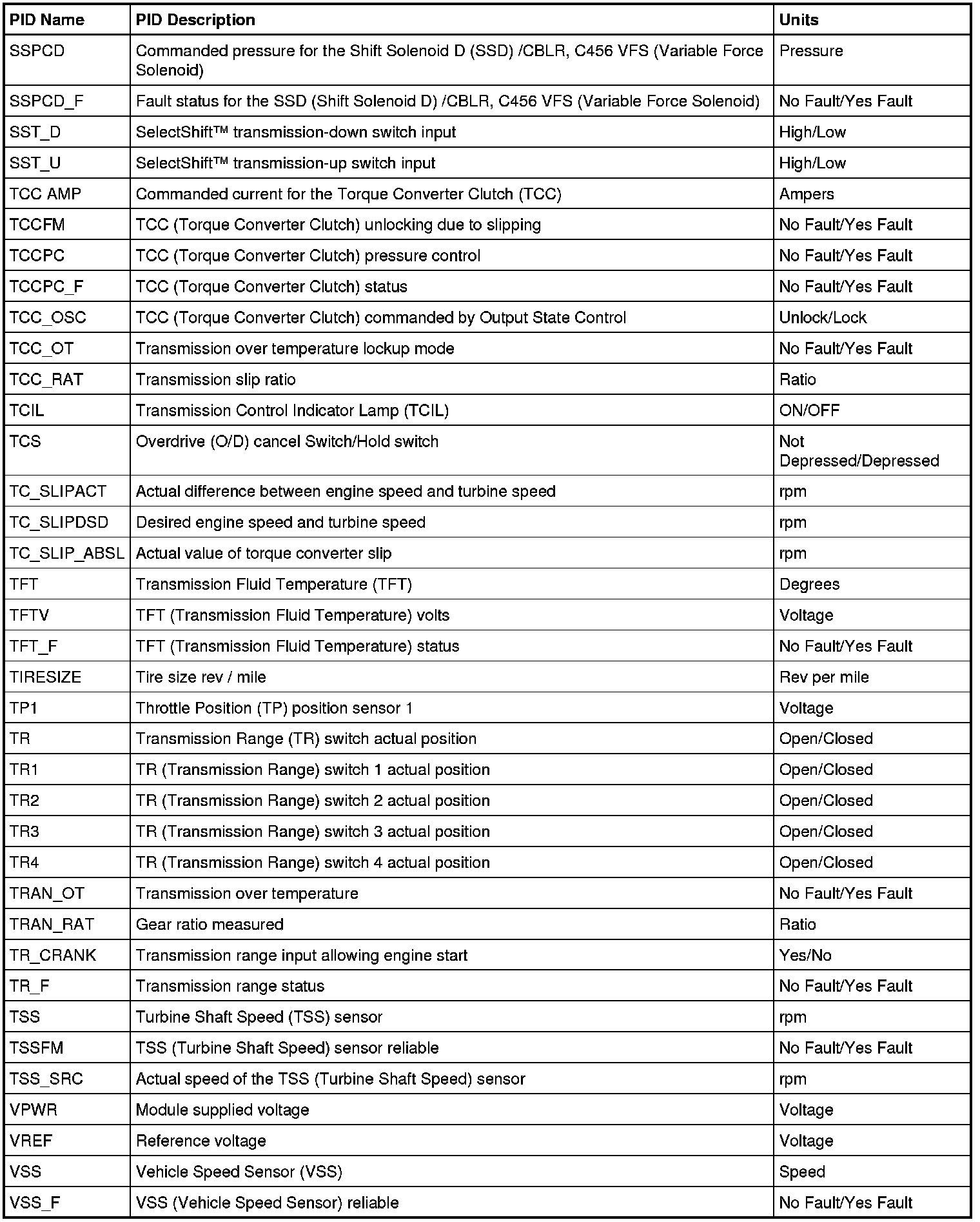 Diagnostic Parameters Identification (PID) Chart