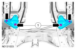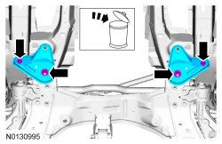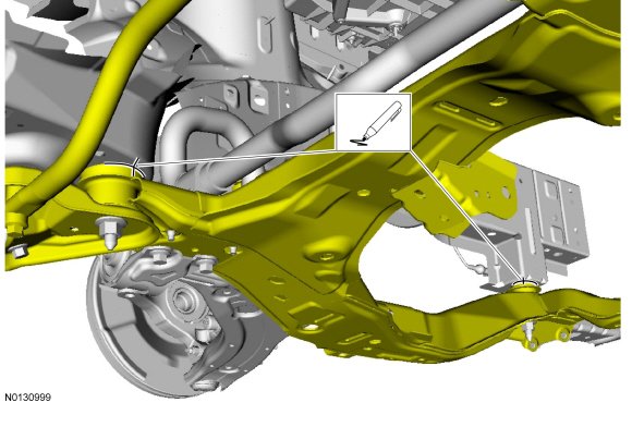 NOTICE: Suspension and subframe fasteners are critical parts specially designed for the purpose. Replacement fasteners must be identical to the original equipment and torqued as specified. Poor quality or improperly tightened fasteners may fail in service, resulting in vehicle damage and major repair expense.