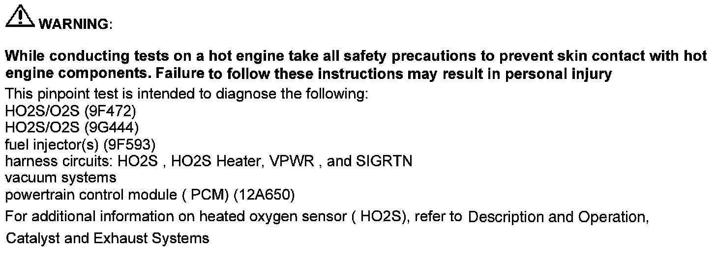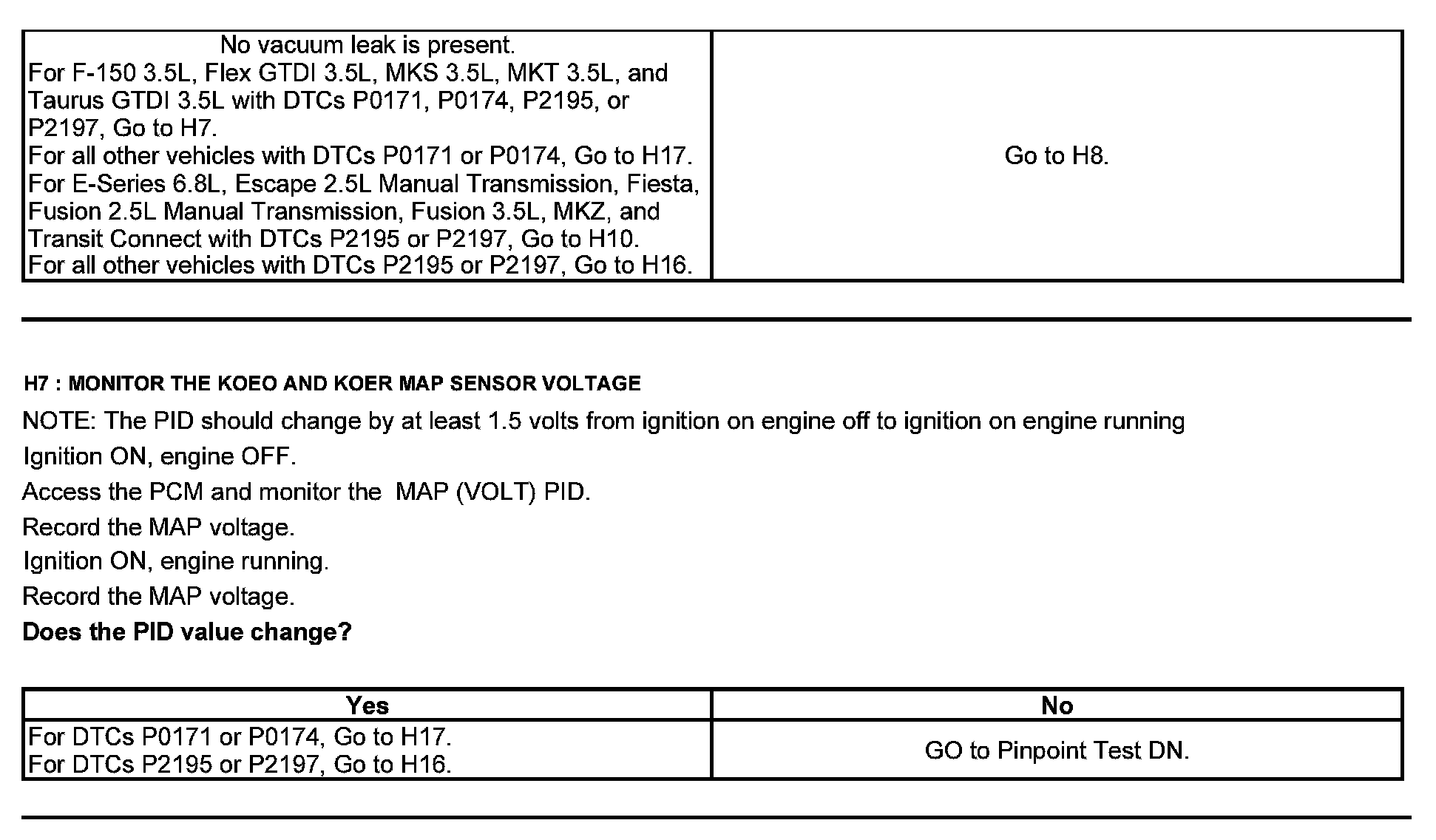 Home >> Ford >> 2012 >> Edge FWD L4-2.0L Turbo >> Repair and Diagnosis >> Powertrain Management >> Computers and Control Systems >> Testing and Inspection >> Pinpoint Tests >> Test H: Fuel Control