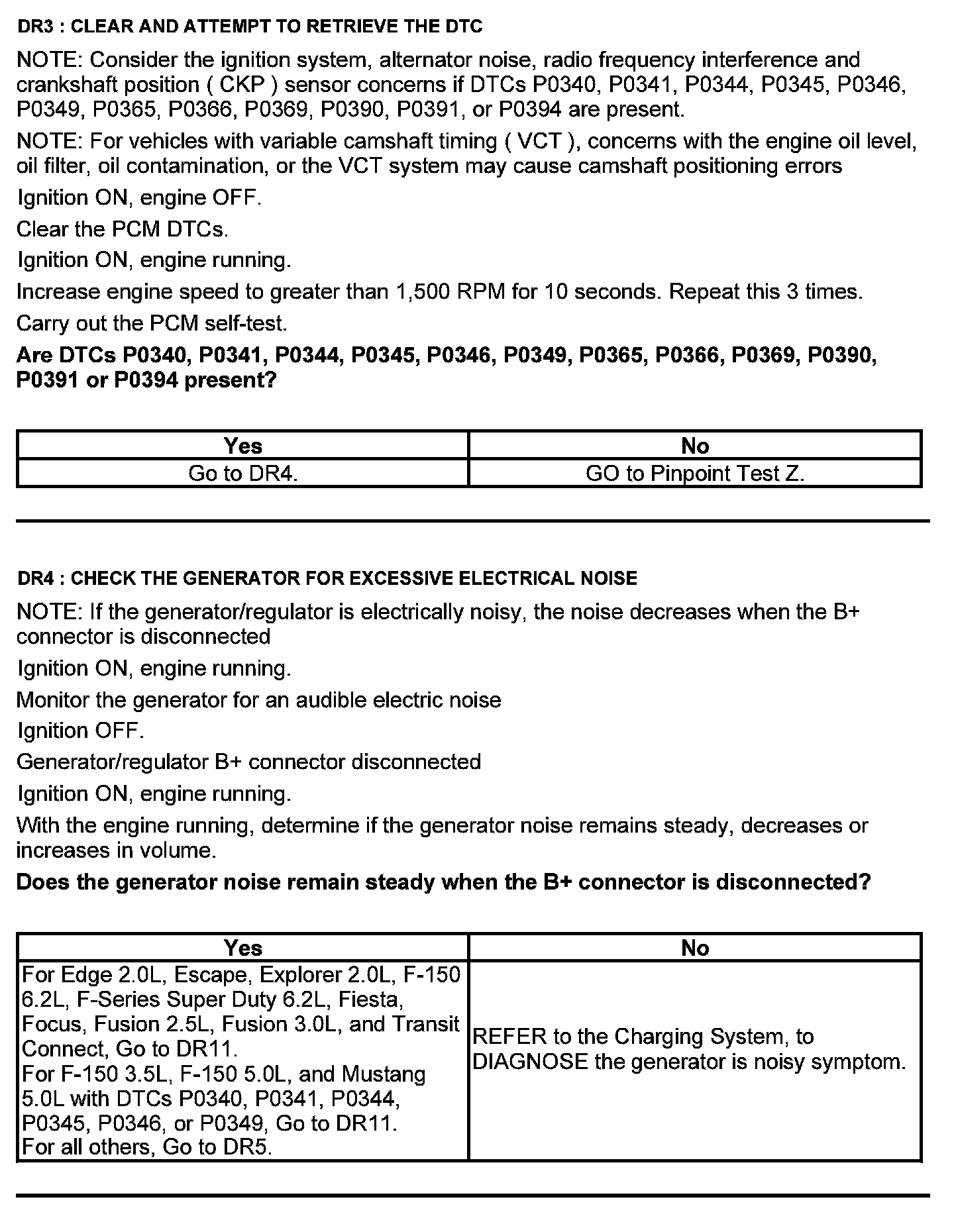 Home >> Ford >> 2012 >> Edge FWD V6-3.5L >> Repair and Diagnosis >> Powertrain Management >> Computers and Control Systems >> Testing and Inspection >> Pinpoint Tests >> Test DR: Camshaft Position (CMP) Sensor