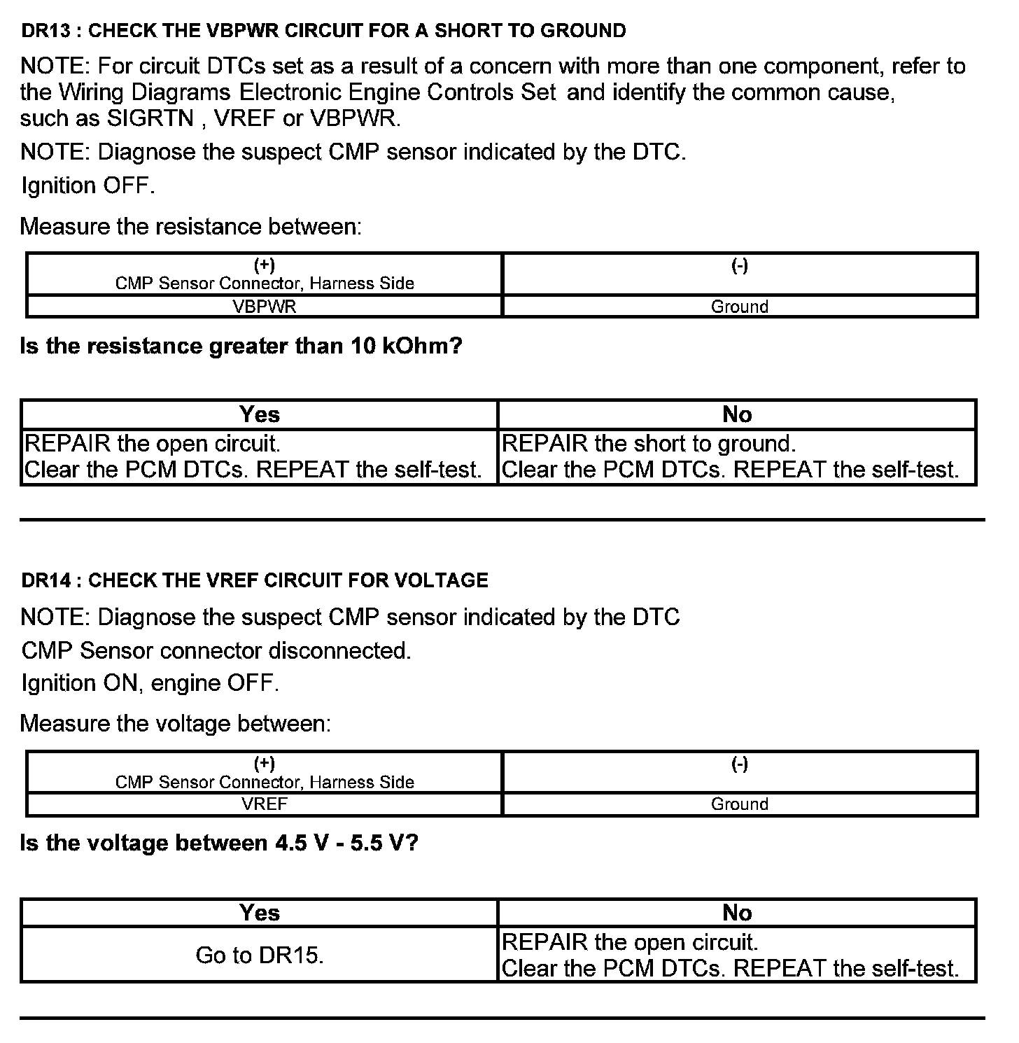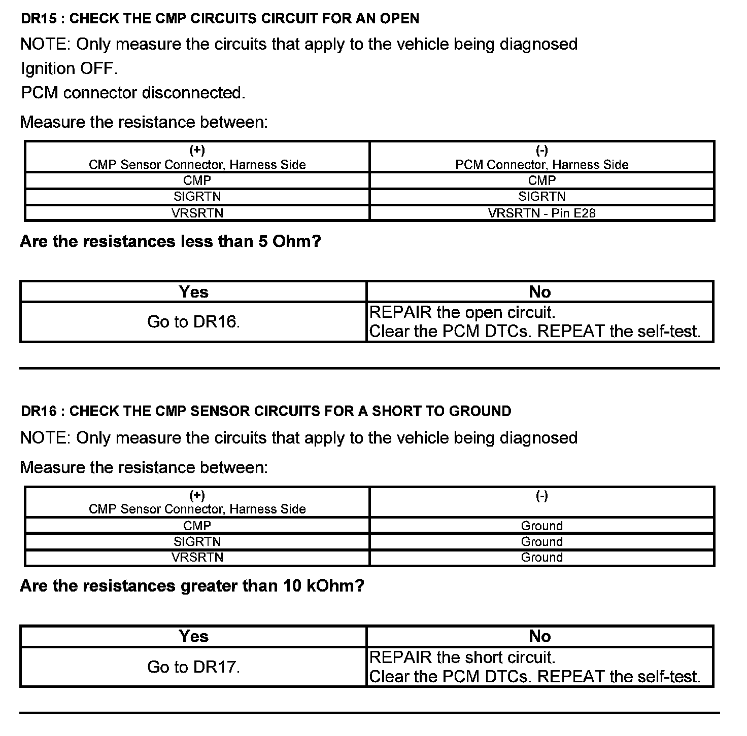 Test DR: Camshaft Position (CMP) Sensor