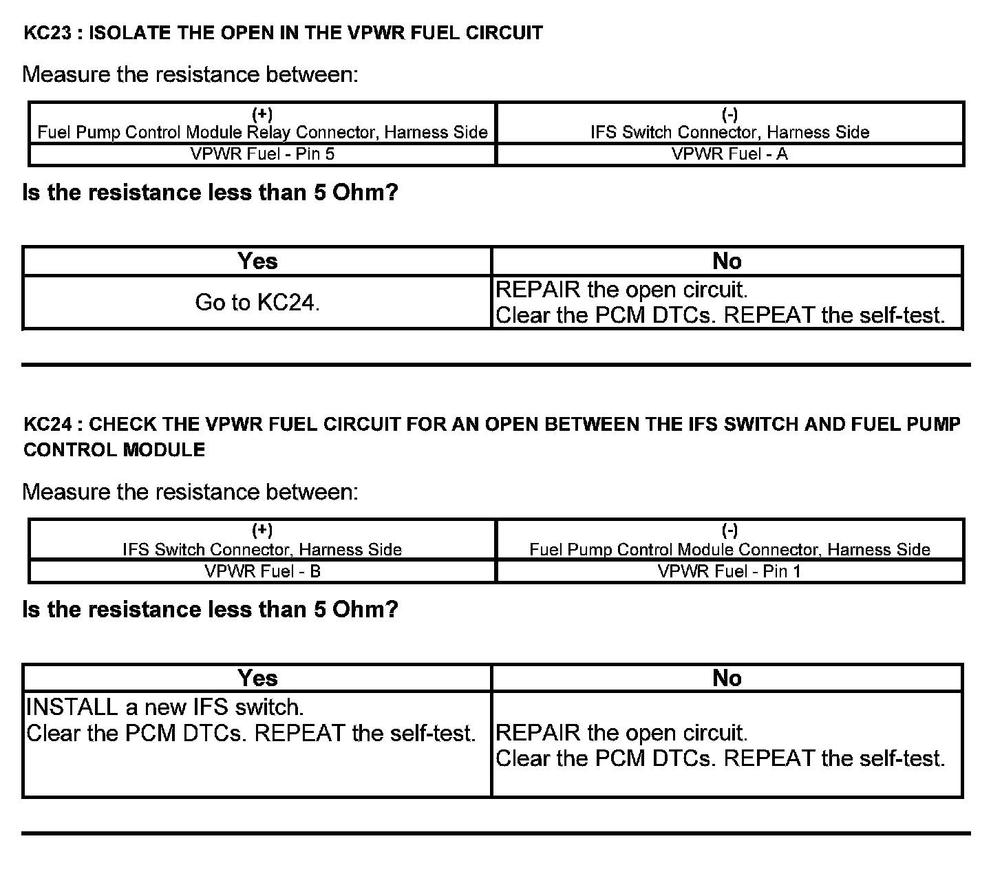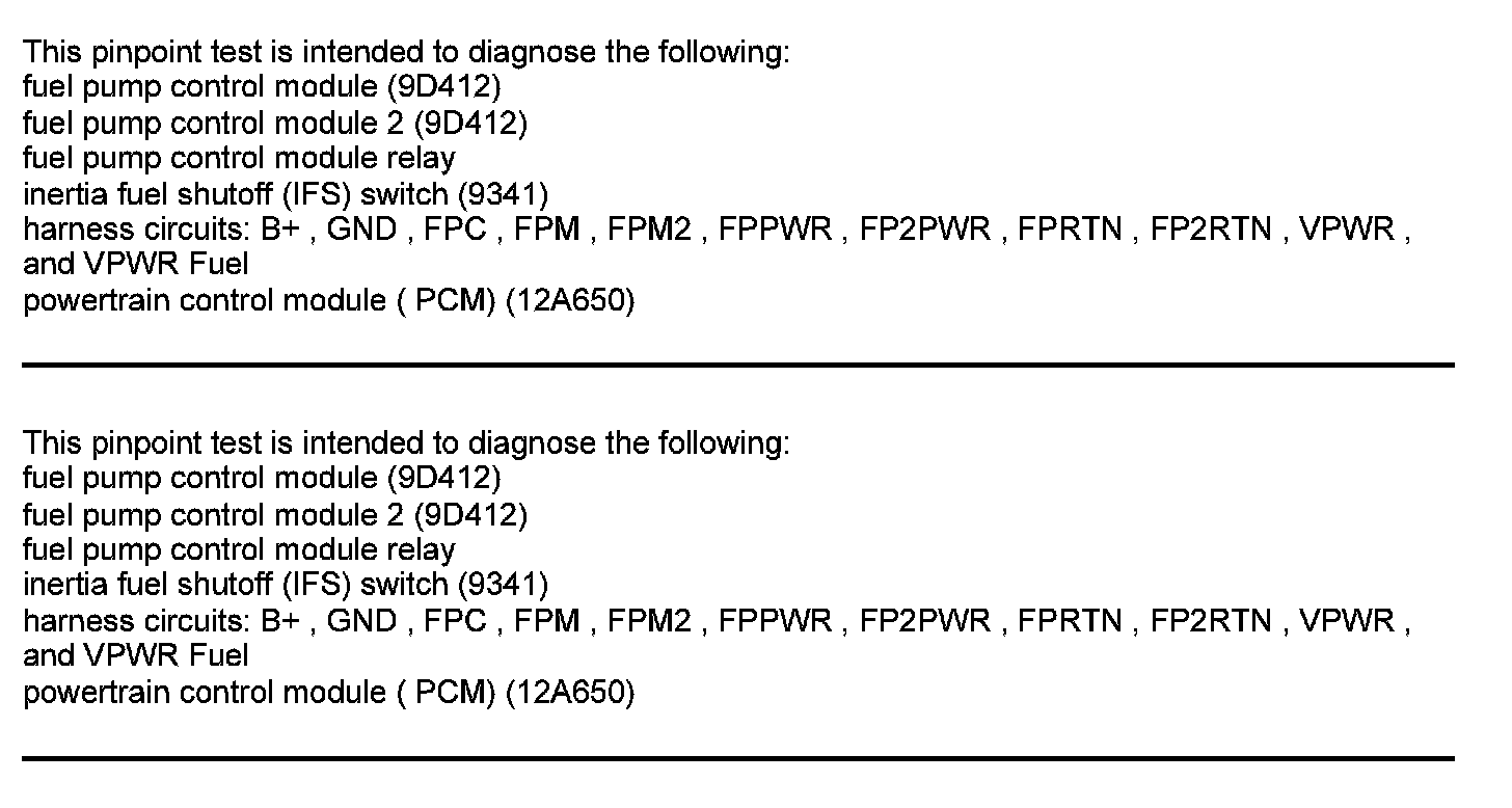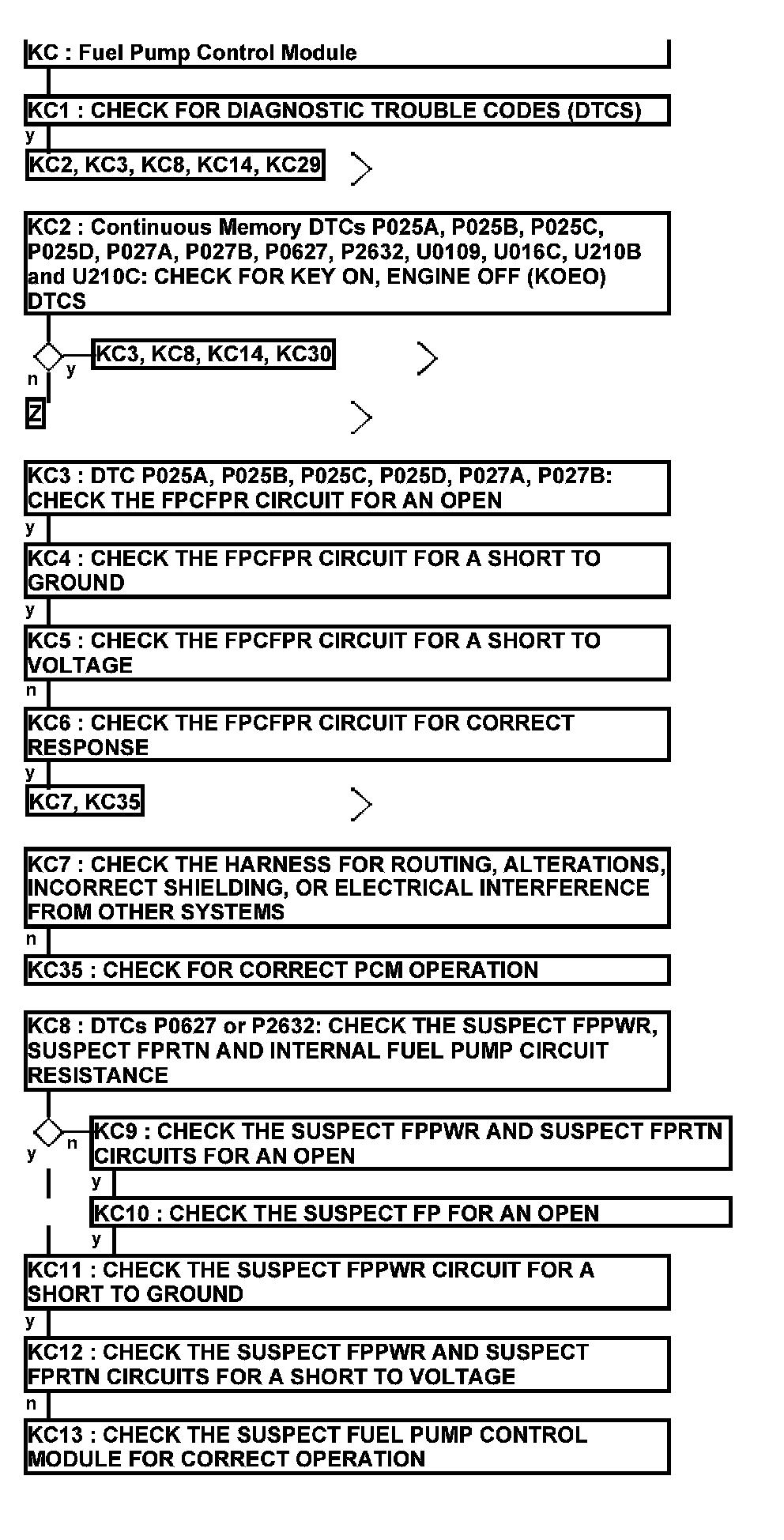 Home >> Ford >> 2012 >> Edge FWD V6-3.5L >> Repair and Diagnosis >> Powertrain Management >> Computers and Control Systems >> Testing and Inspection >> Pinpoint Tests >> Test KC: Fuel Pump Control Module