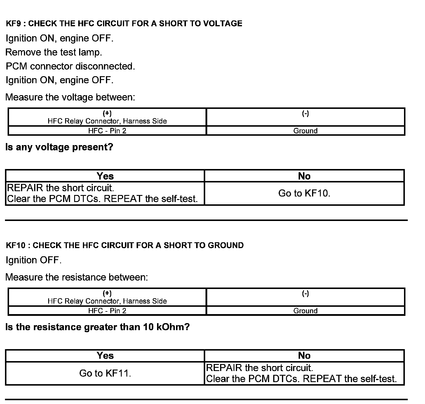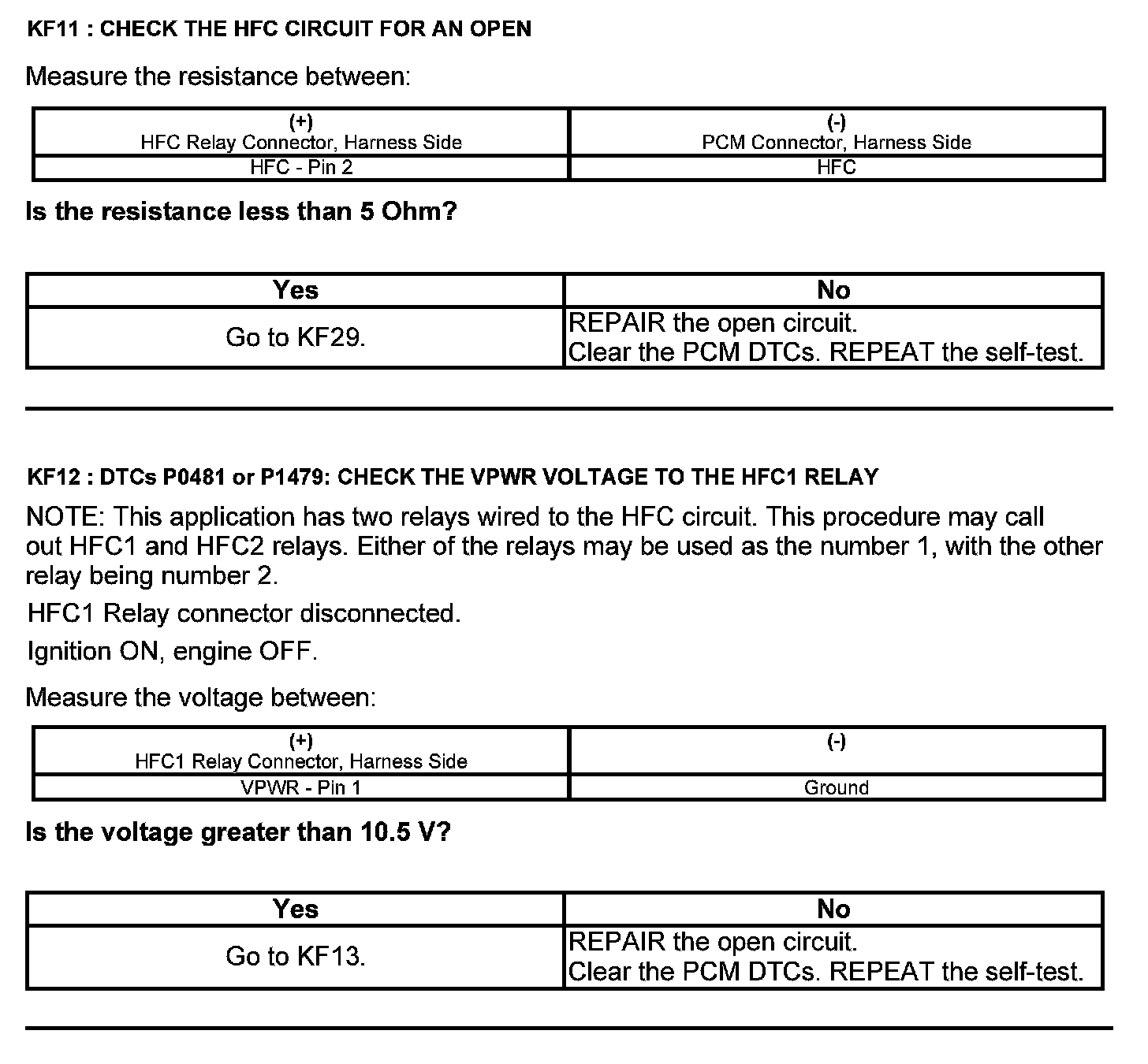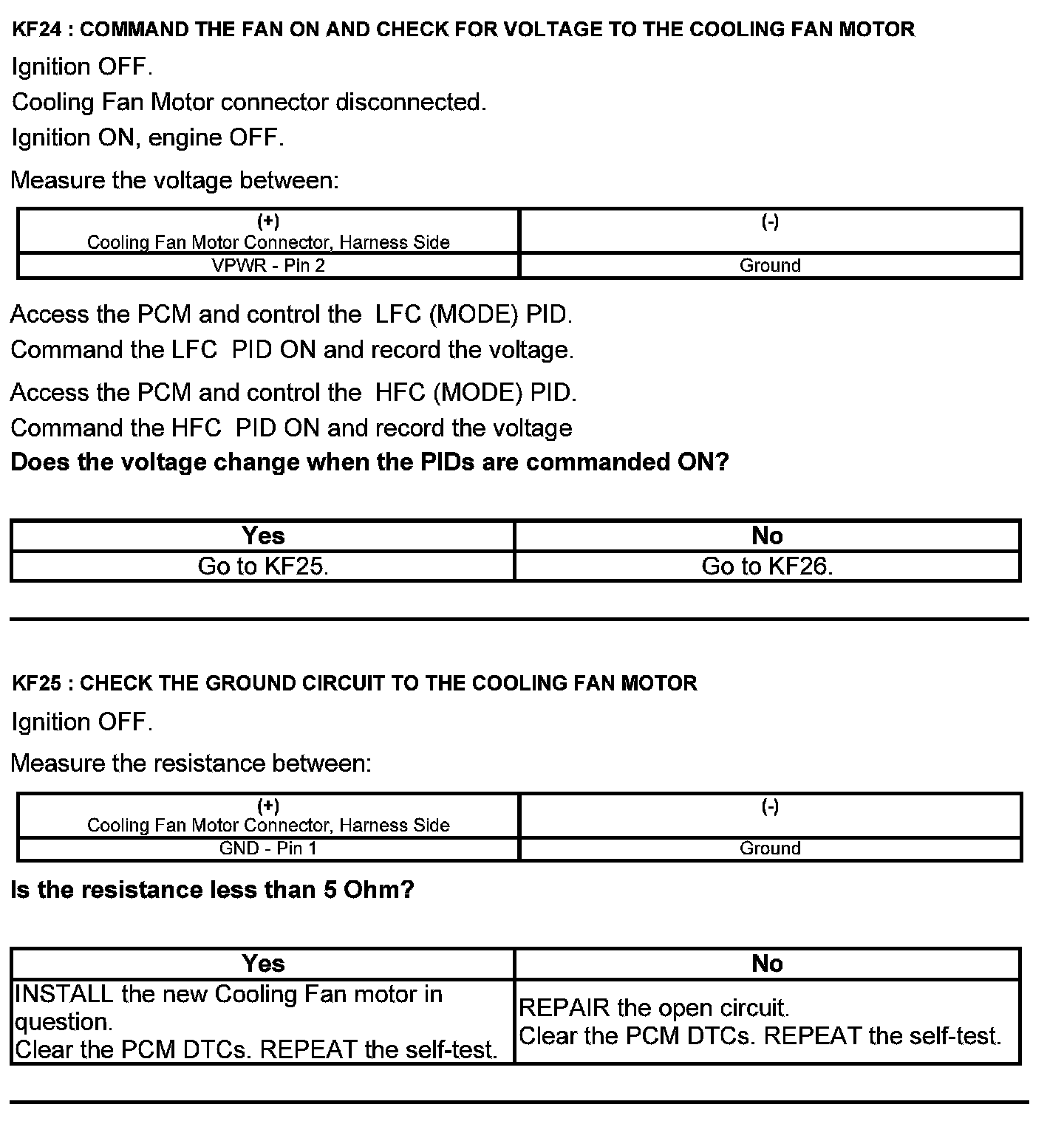 Home >> Ford >> 2012 >> Edge FWD V6-3.5L >> Repair and Diagnosis >> Powertrain Management >> Computers and Control Systems >> Testing and Inspection >> Pinpoint Tests >> Test KF: Fan Control Relays