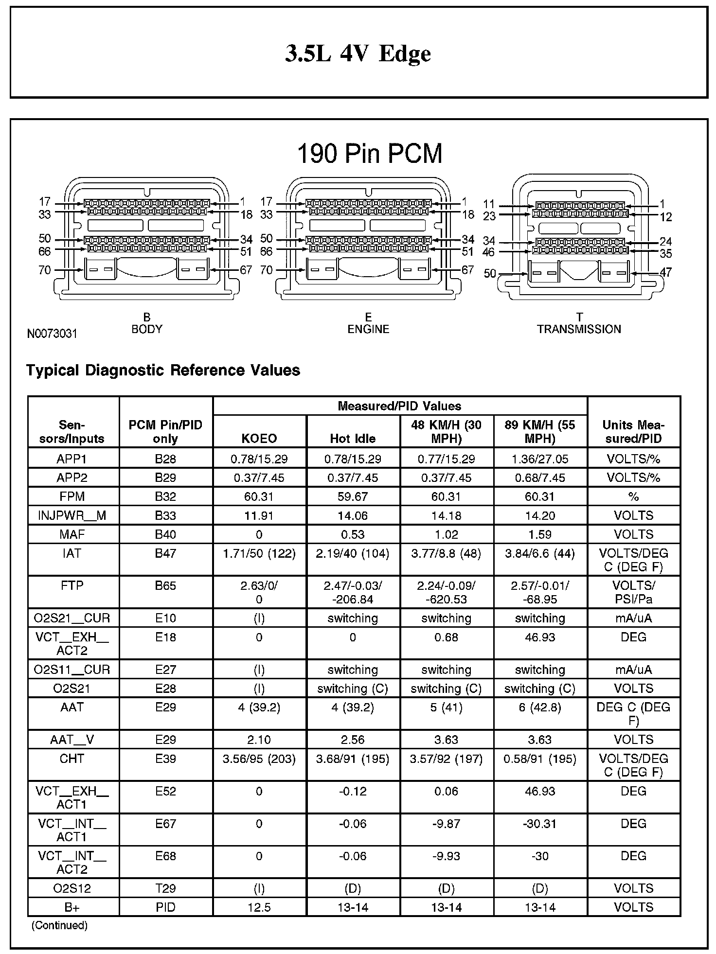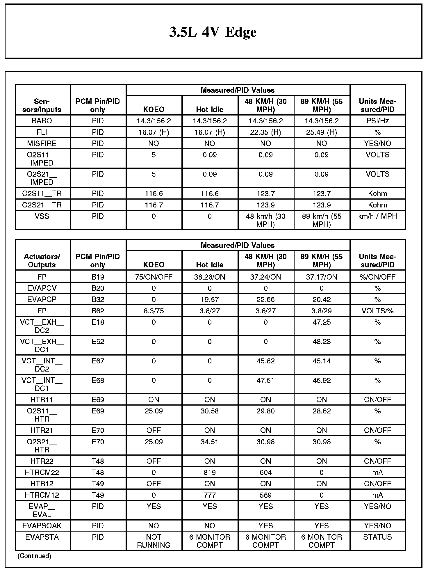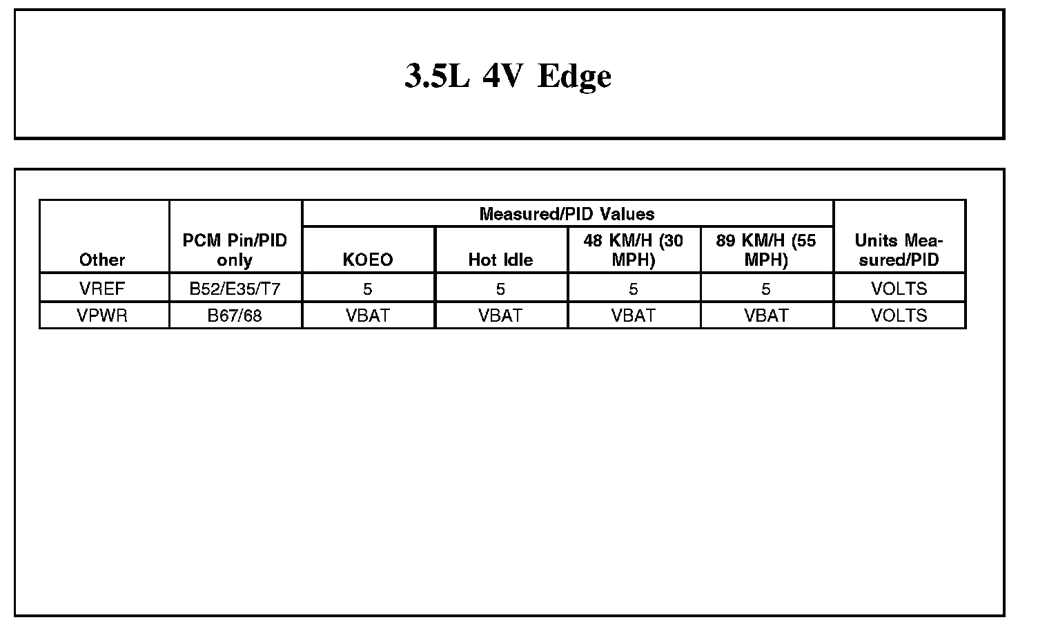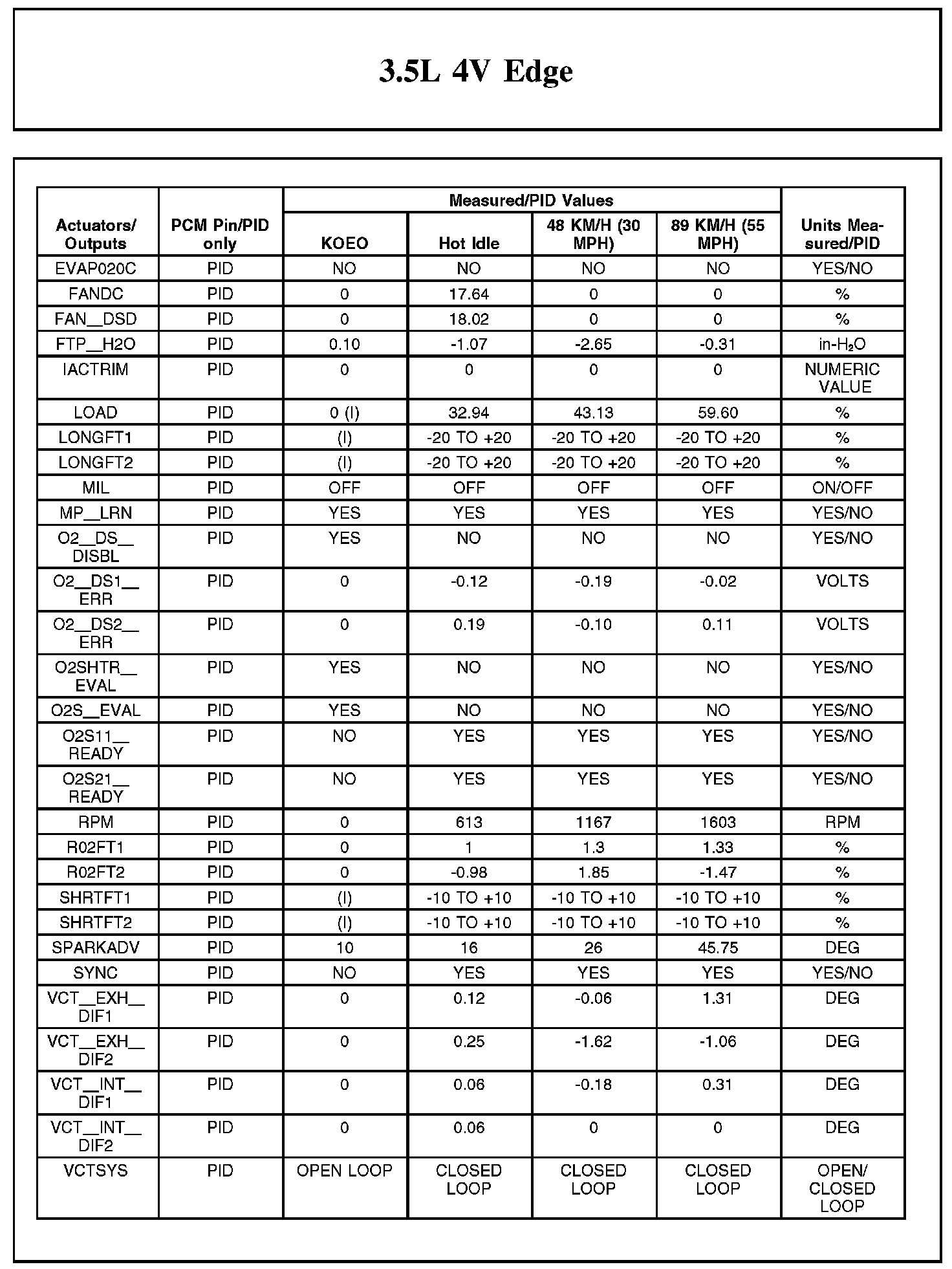 Home >> Ford >> 2012 >> Edge FWD V6-3.5L >> Repair and Diagnosis >> Powertrain Management >> Computers and Control Systems >> Testing and Inspection >> Scan Tool Testing and Procedures >> Typical Diagnostic Reference Values