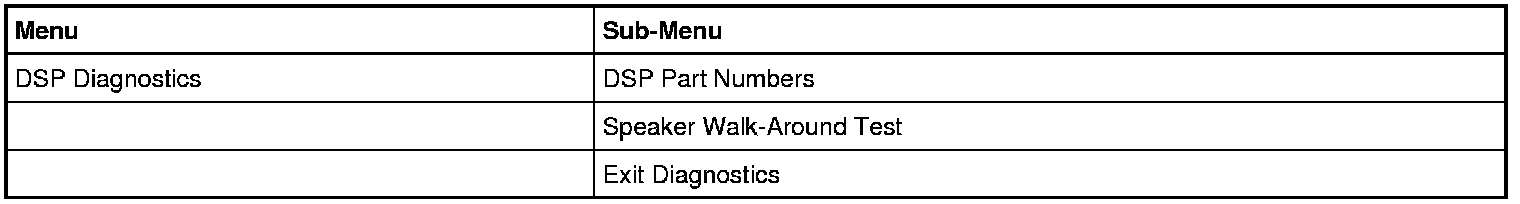 Once the speaker walk-around test is complete, the following information is available through the "BEZEL DIAGNOSTICS" menu using the audio system control buttons: