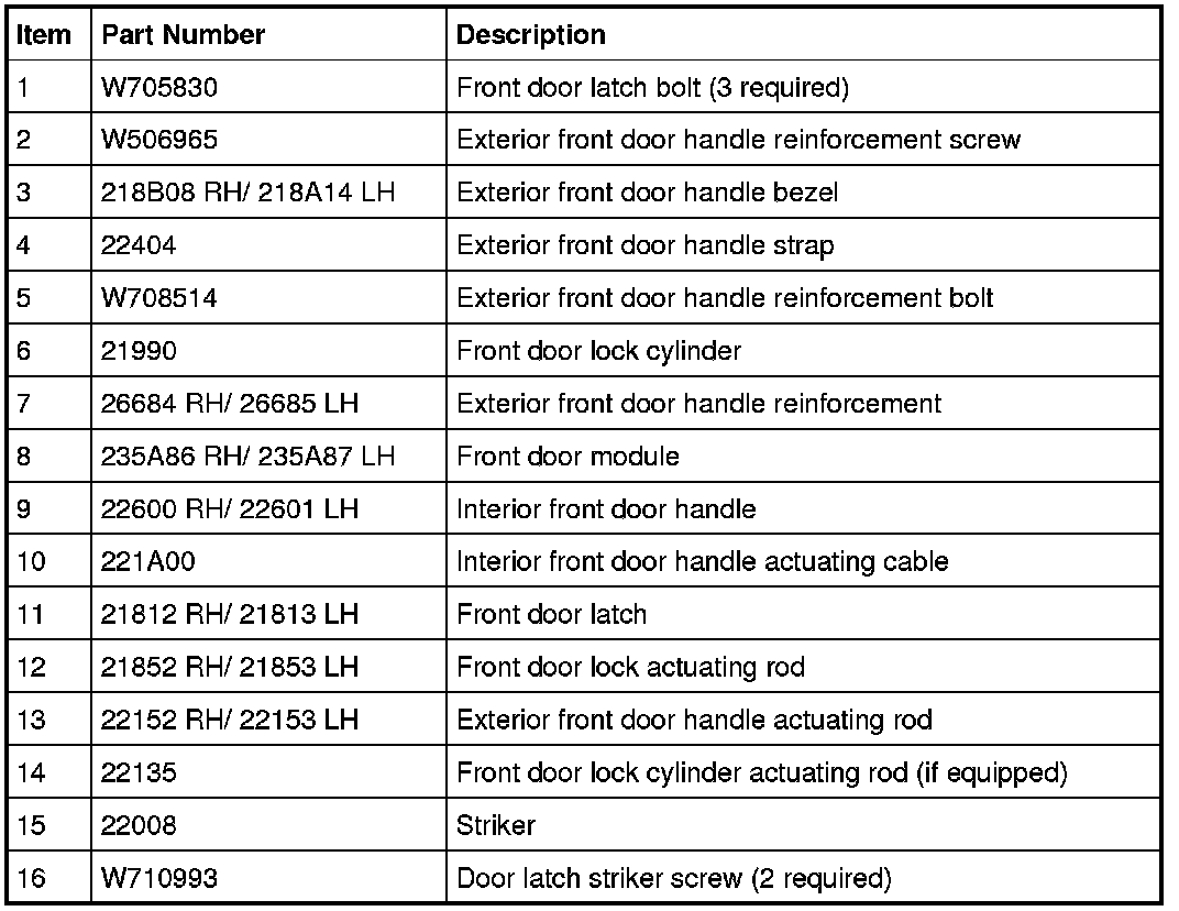 Front Door Handles, Locks and Latches - Exploded View