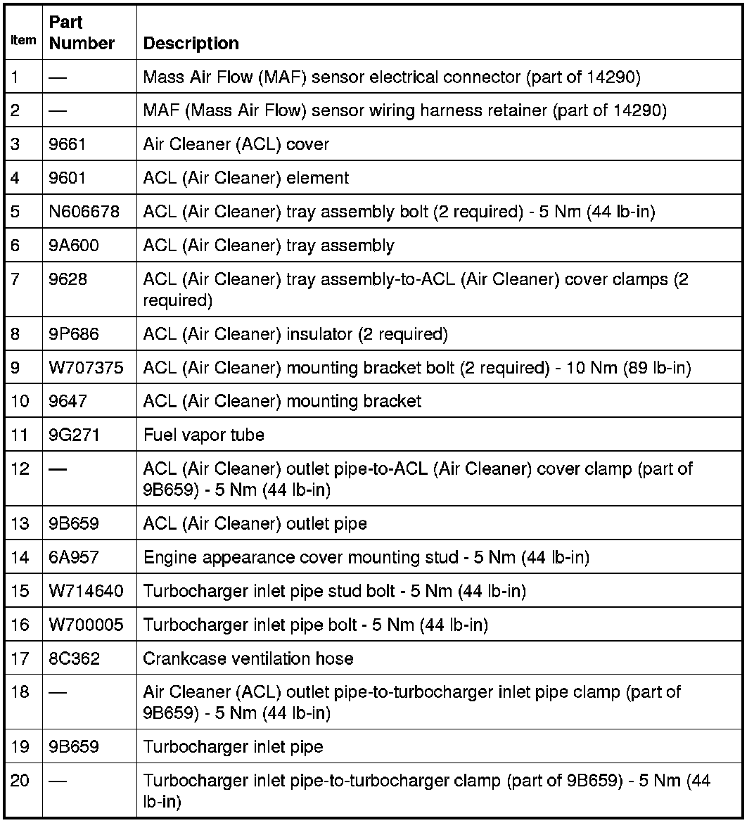 NOTE: Securely seal the ACL (Air Cleaner) outlet pipe and the turbocharger pipes to prevent unmetered air from entering the engine.